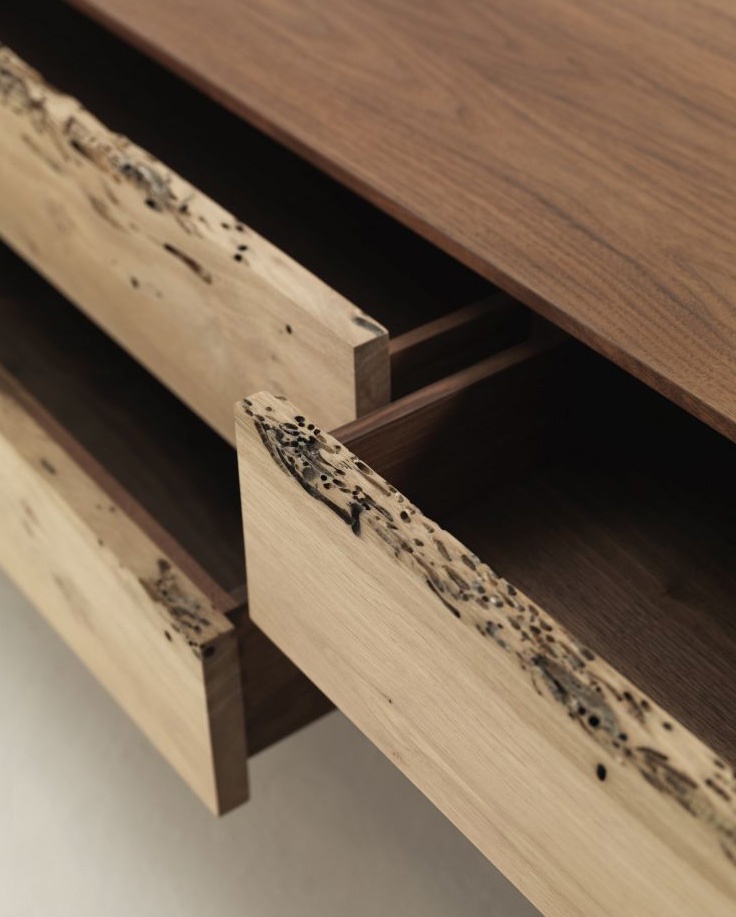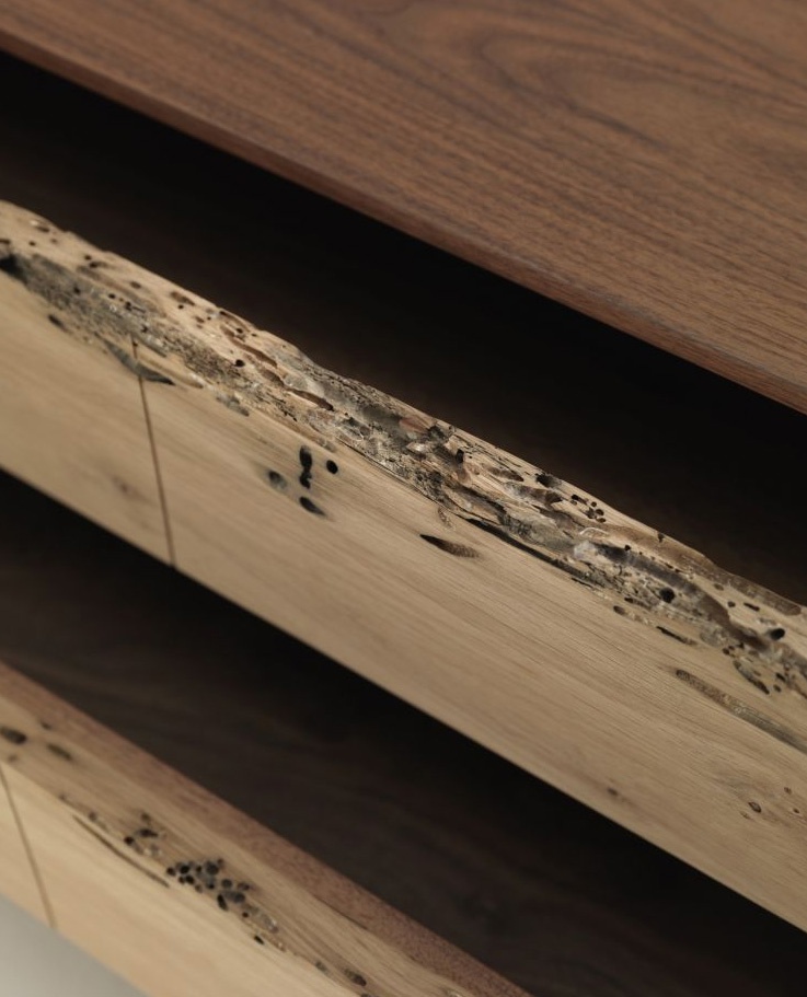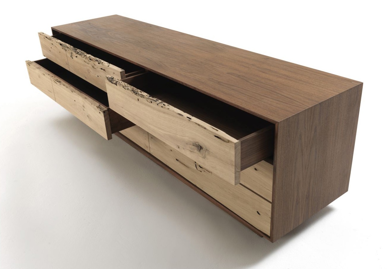 The Rialto Briccola Lowboard Cabinet from the Italian manufacturer Riva 1920. The model with six drawers. The body is made of wood. Fittings made of metal. Color in stock. Model for living room in modern style.