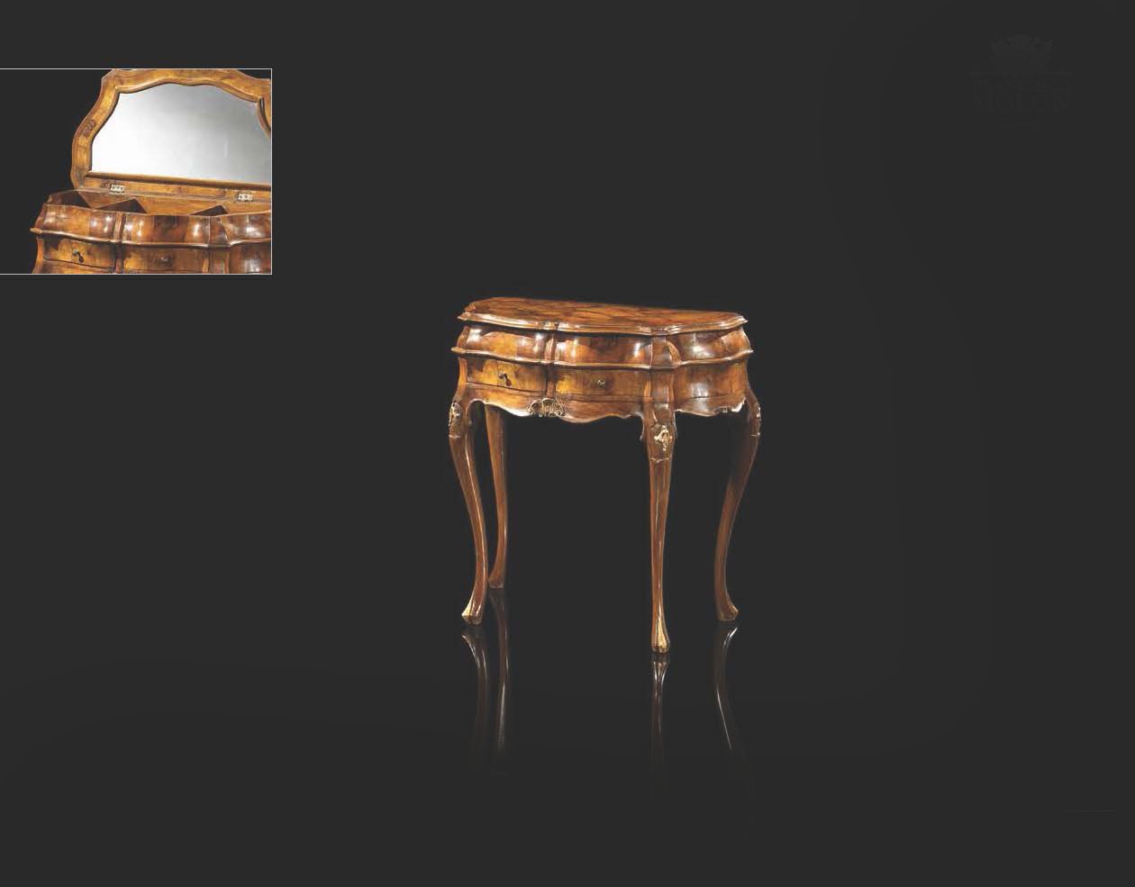 Dressing table from the Italian manufacturer Francesco Molon. Model of the collection Memorie Italiane executed in classical style. Frame in natural wood finish - lacquer, carved handmade items. Decorative accessories - metal.