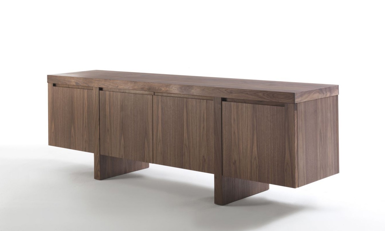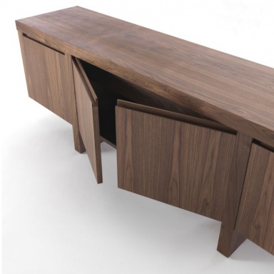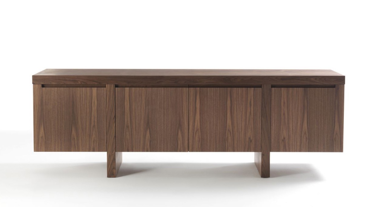 Stand Levistico from the Italian manufacturer Riva 1920. Model equipped with four doors, shelves and internal drawer in the Central section of the pedestal. The body is made of wood to choose from for the company directory. Accessories made of metal.