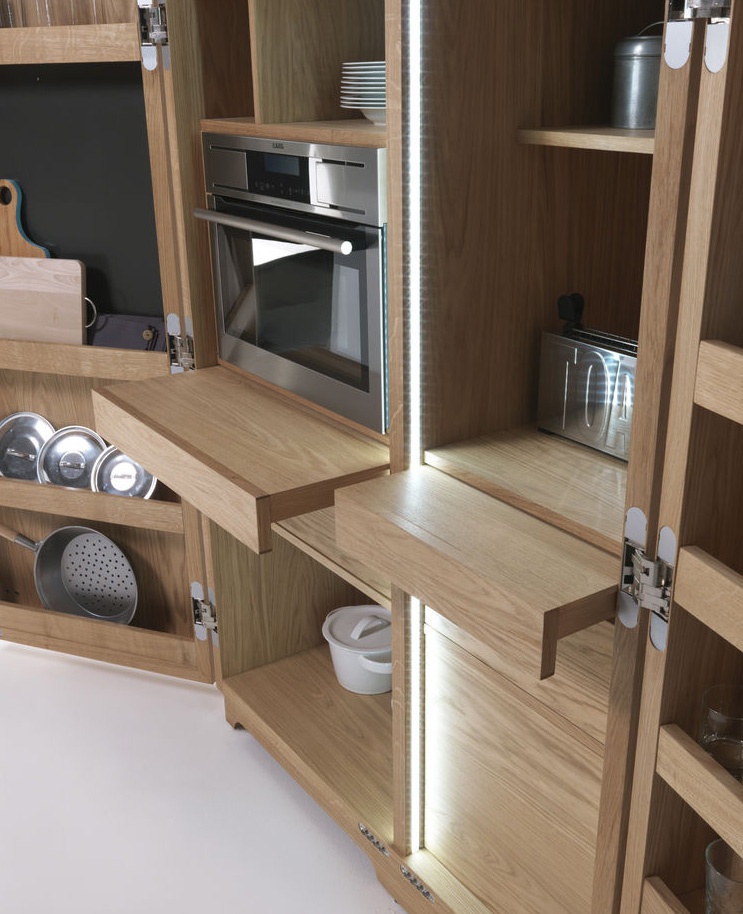 Multifunctional Cabinet Cambusa Cook Jumbo from the Italian manufacturer Riva 1920. Can be used as a sideboard, kitchen cupboard, wine Cabinet, etc. the Casing is made of walnut, oak or any other wood to the company Riva 1920. The oven is fitted with internal led lighting which automatically turns on when you open the Cabinet. Color in stock. The model for modern interiors.