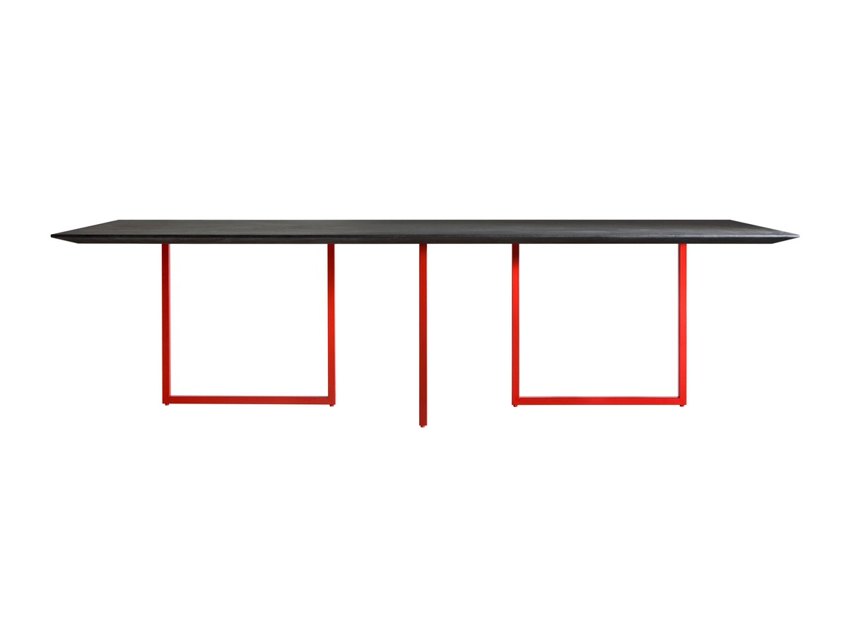 The Gazelle table from the Italian manufacturer Driade. Dining model with rectangular top made of MDF, avetova gamma to choose from. Support original form is made of steel tubes and painted black, white, red or blue color choice. For your convenience the factory has 3 size of the table. The design is executed in modern style. A modern solution for the interior of your living room.