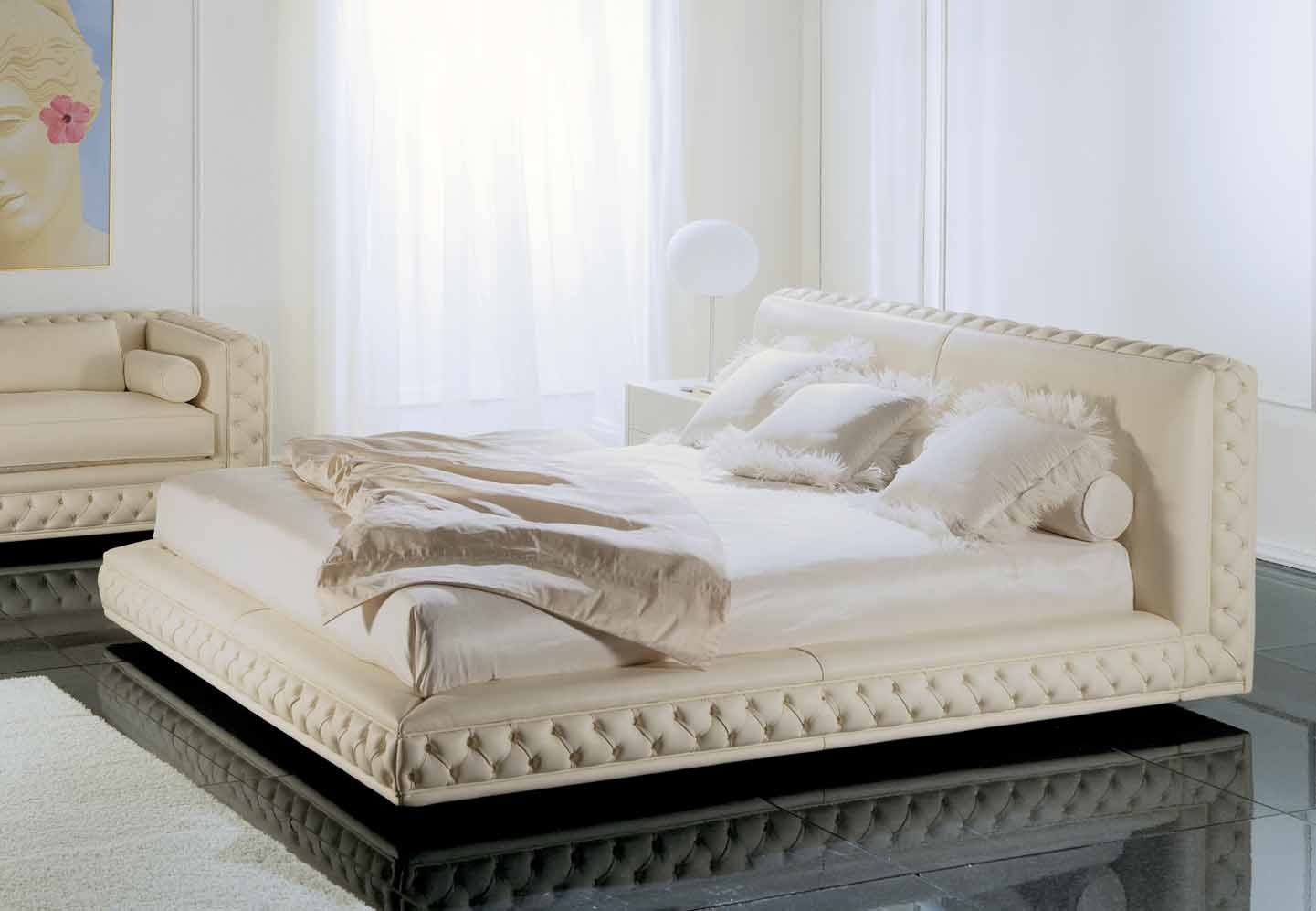 Double bed Atlantique Italian manufacturer Zanaboni. Presents a model of double bed with low headboard. The model of regular geometric shapes, the contour bed is finished with a decorative stitch Capito. Color scheme in white. A modern solution for the interior of a bedroom in classic style.