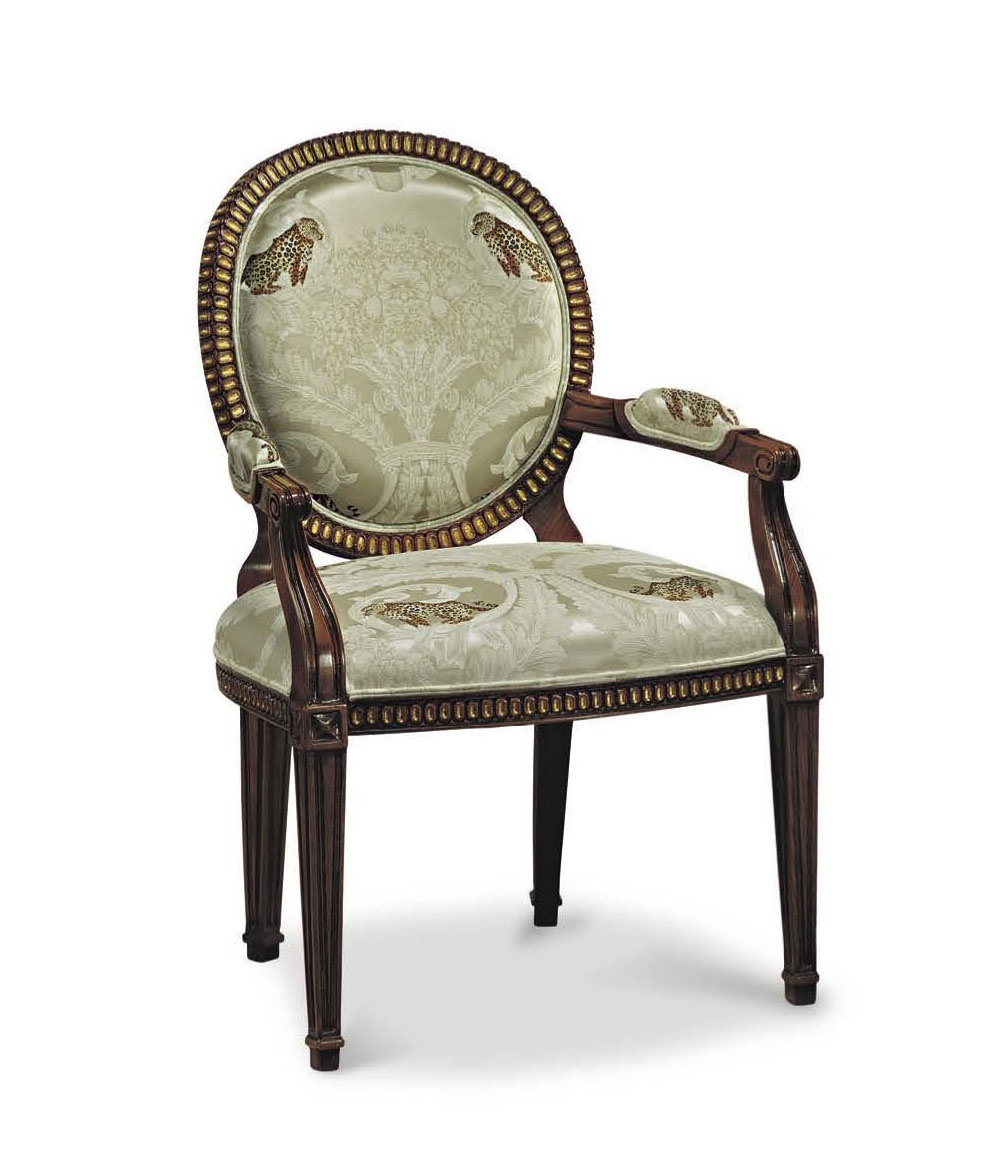 Armchair from Italian manufacturer Francesco Molon. Model from a collection of the Upholstery in classic style. The frame is made of wood. Upholstered in a choice from a range of companies. Colours in stock.