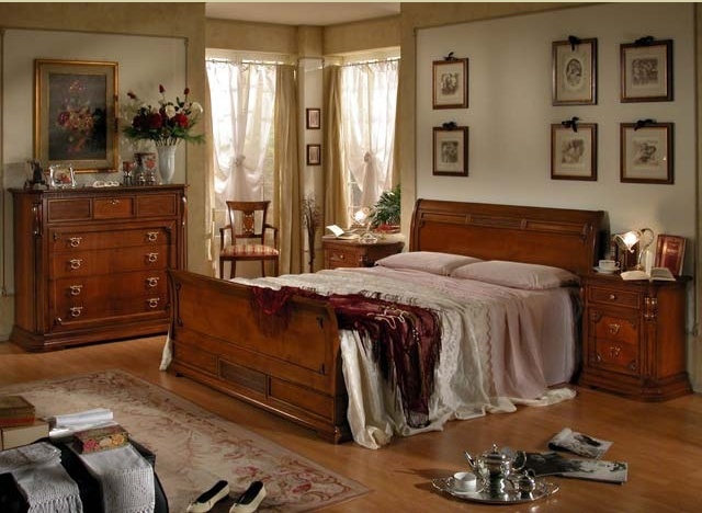 Bedroom Afrodite from the Italian manufacturer Megaros. The whole set is hand made of solid wood, finish - veneer. A great choice for bedrooms in classic style. Colors: brown, natural color of the wood.