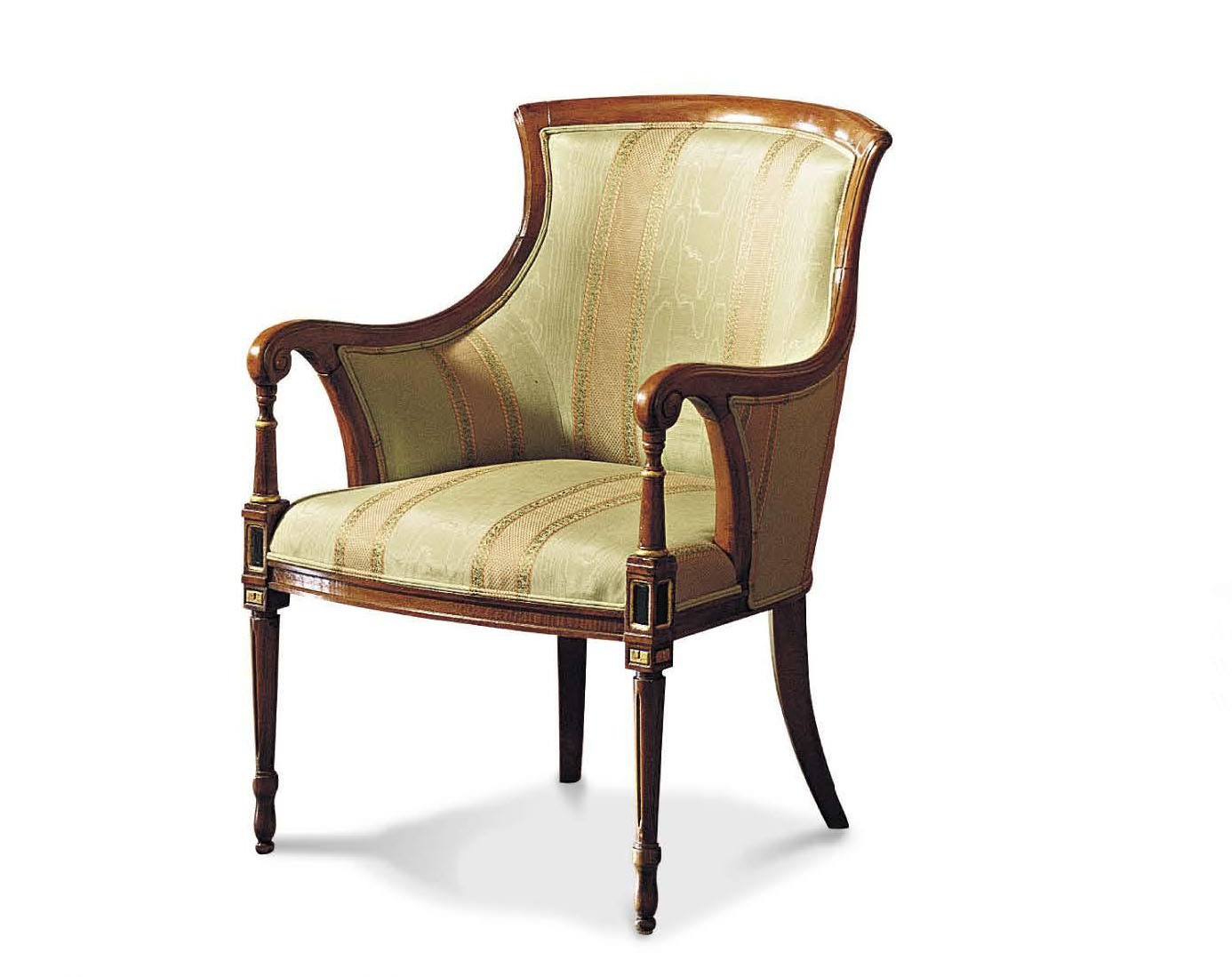 A chair from the Italian manufacturer Francesco Molon. Model from a collection of the Upholstery in classic style. The frame is natural wood legs and armrests carved handmade. Padded seat and back in fabric from the company portfolio. Colours in stock.