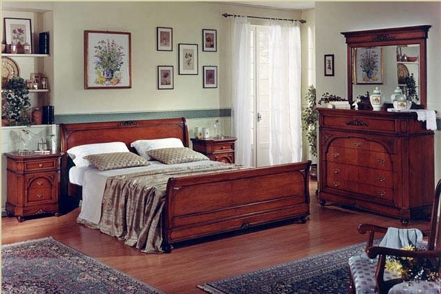 Bedroom Artemisia from the Italian manufacturer Megaros. The entire set is made from solid wood, finish - veneer. Pretty model for bedroom in classical style. Colors: brown, natural color of the wood.