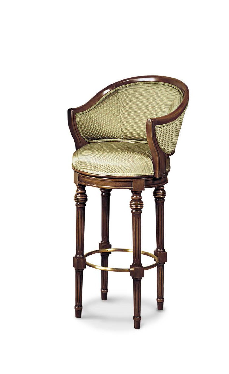 Bar stool from the Italian manufacturer Francesco Molon. Model from a collection of the Upholstery in classic style. Frame made of natural wood in the finishing varnish. A soft seat in fabric. Colours in stock.