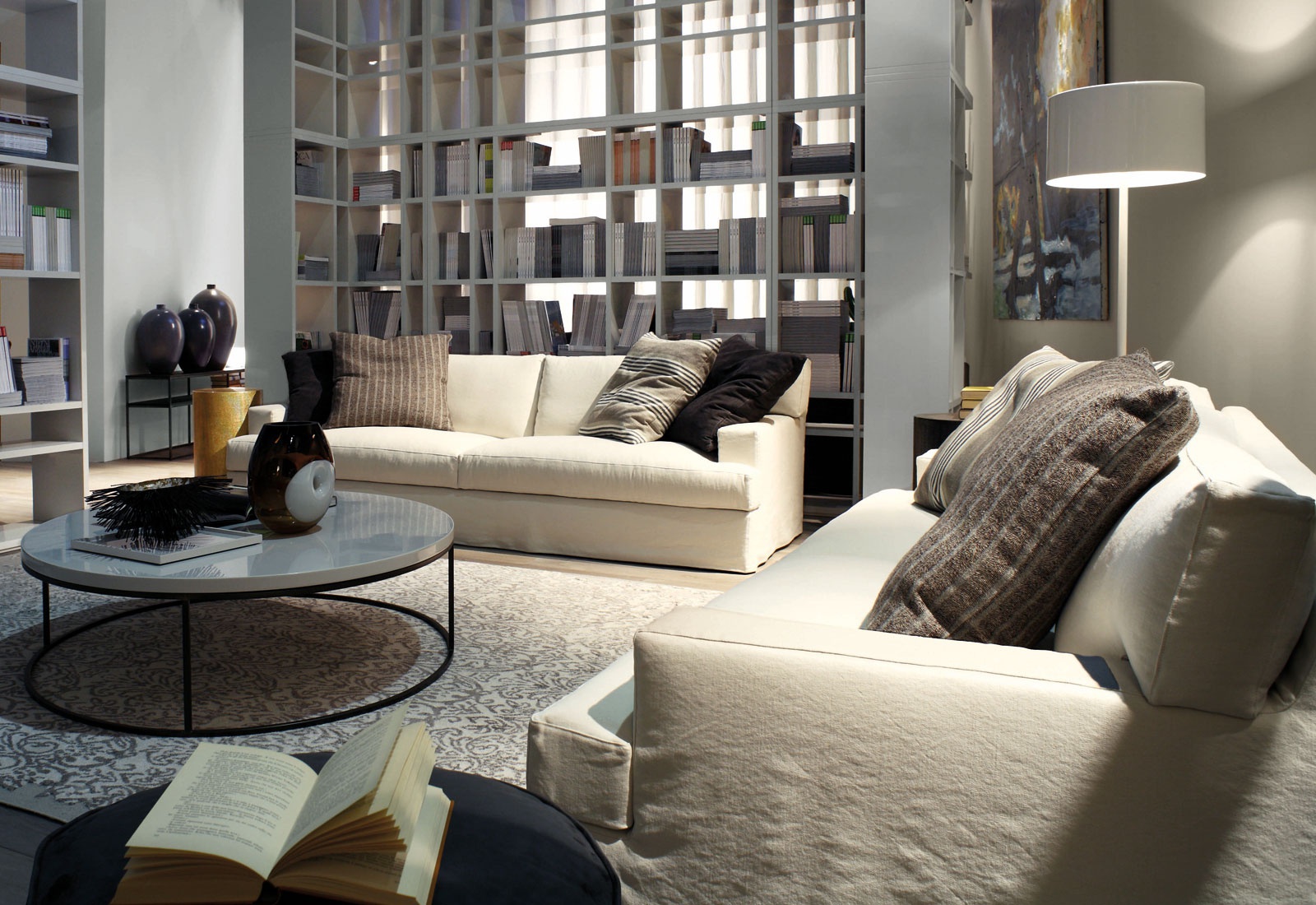 Bogart sofa from Italian manufacturer Meridiani. The frame is made of wood, filler - foam, upholstery - leather or textiles from a range of campaigns. Triple product is the perfect choice for a living room in modern style.
