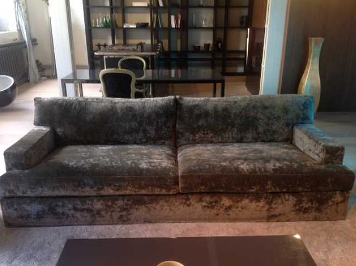 | Description: | Bogart sofa from Italian manufacturer Meridiani. The frame is made of wood, filler - foam, upholstery - textile fabric (TONGA 01, cat. GOLD). Legs color MOKA. |