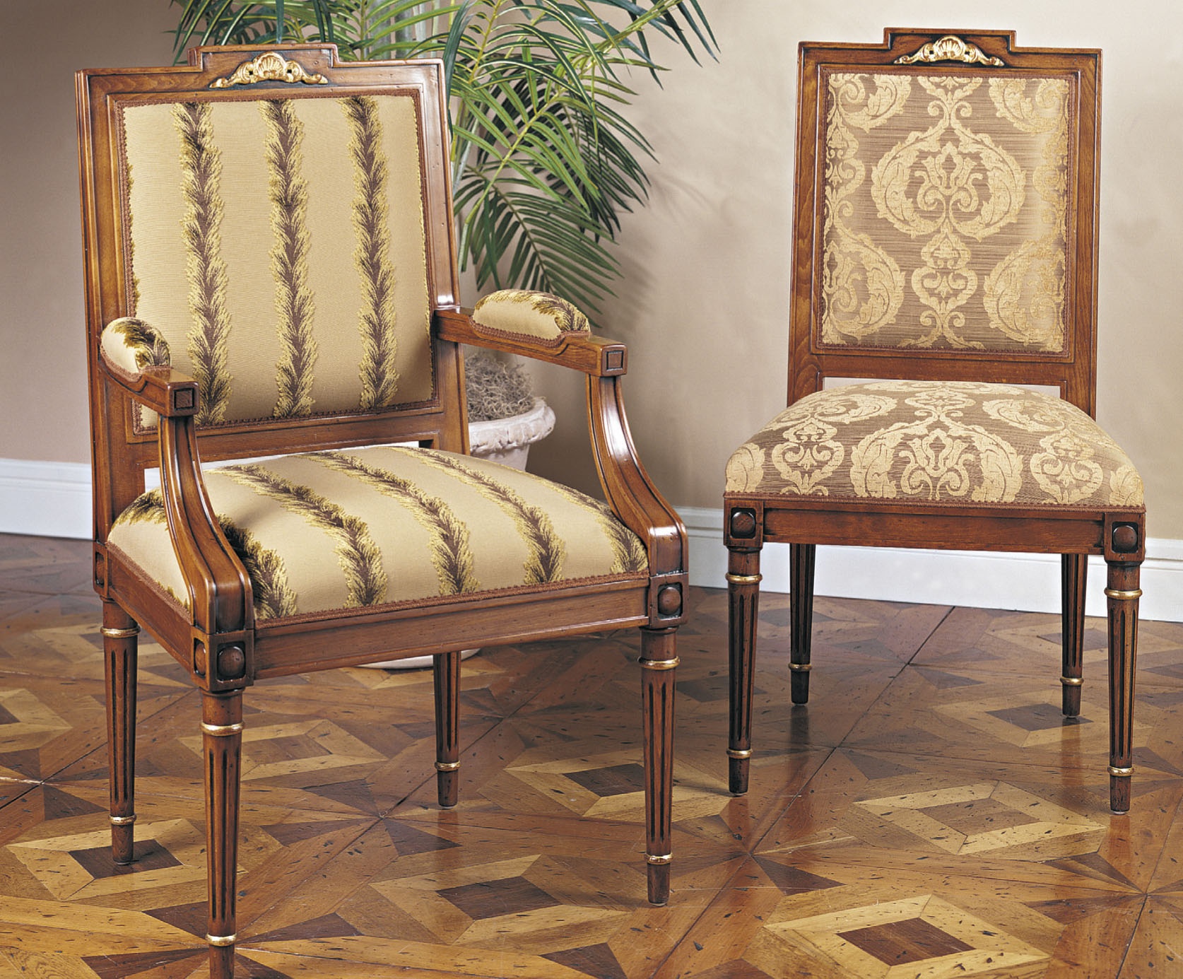 A chair from the Italian manufacturer Francesco Molon. Model from a collection of the Upholstery in classic style. Frame made from natural wood, coated with varnish. There are various finish options. Carved handmade items. Seat and back upholstered. Upholstery textile to choose from a range of companies.