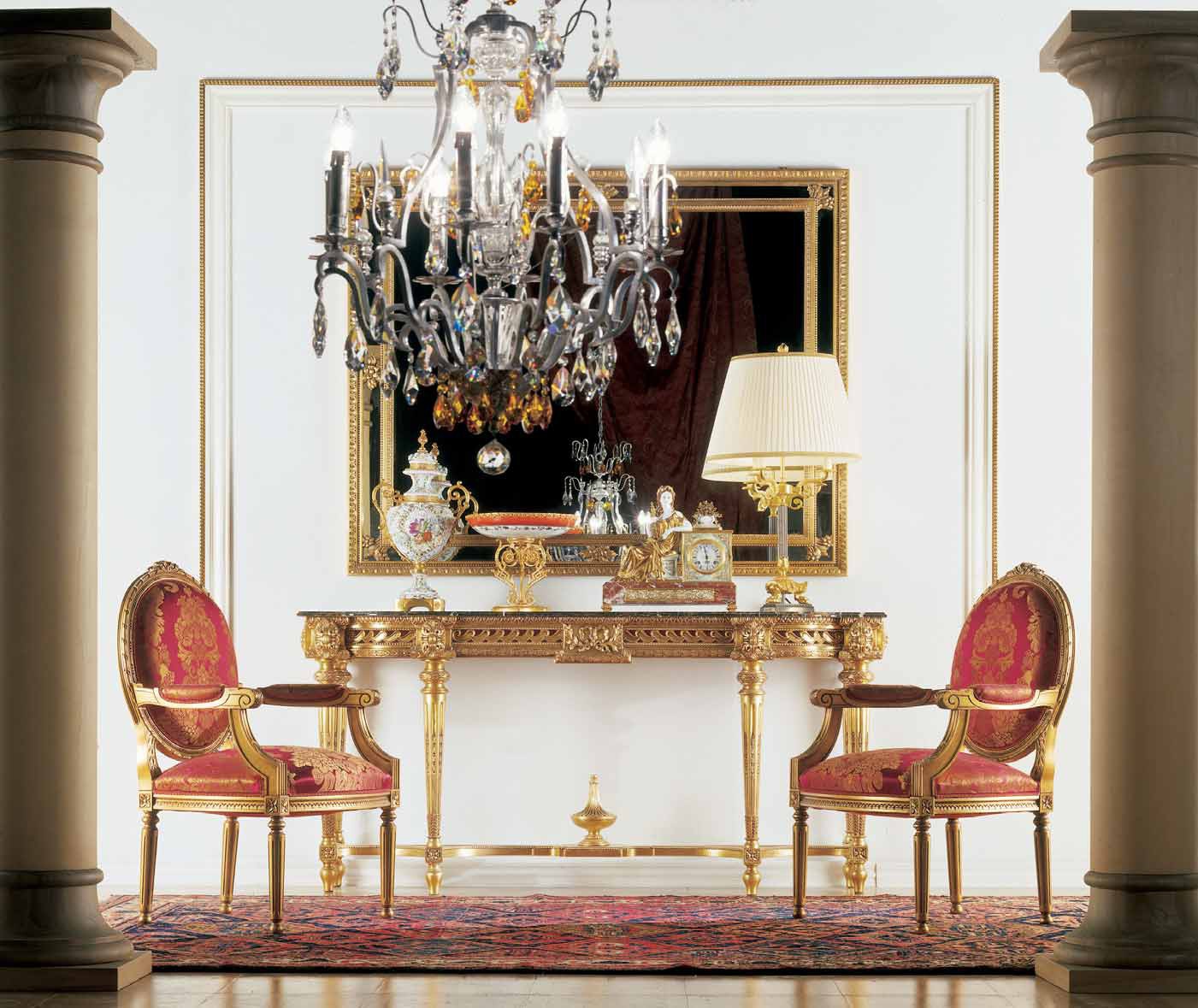 The console on high legs Italian manufacturer Zanaboni. The presented model of the console at a high figured legs, the gold plated coating. Decorated with handmade carving. Designed in the Baroque style.
