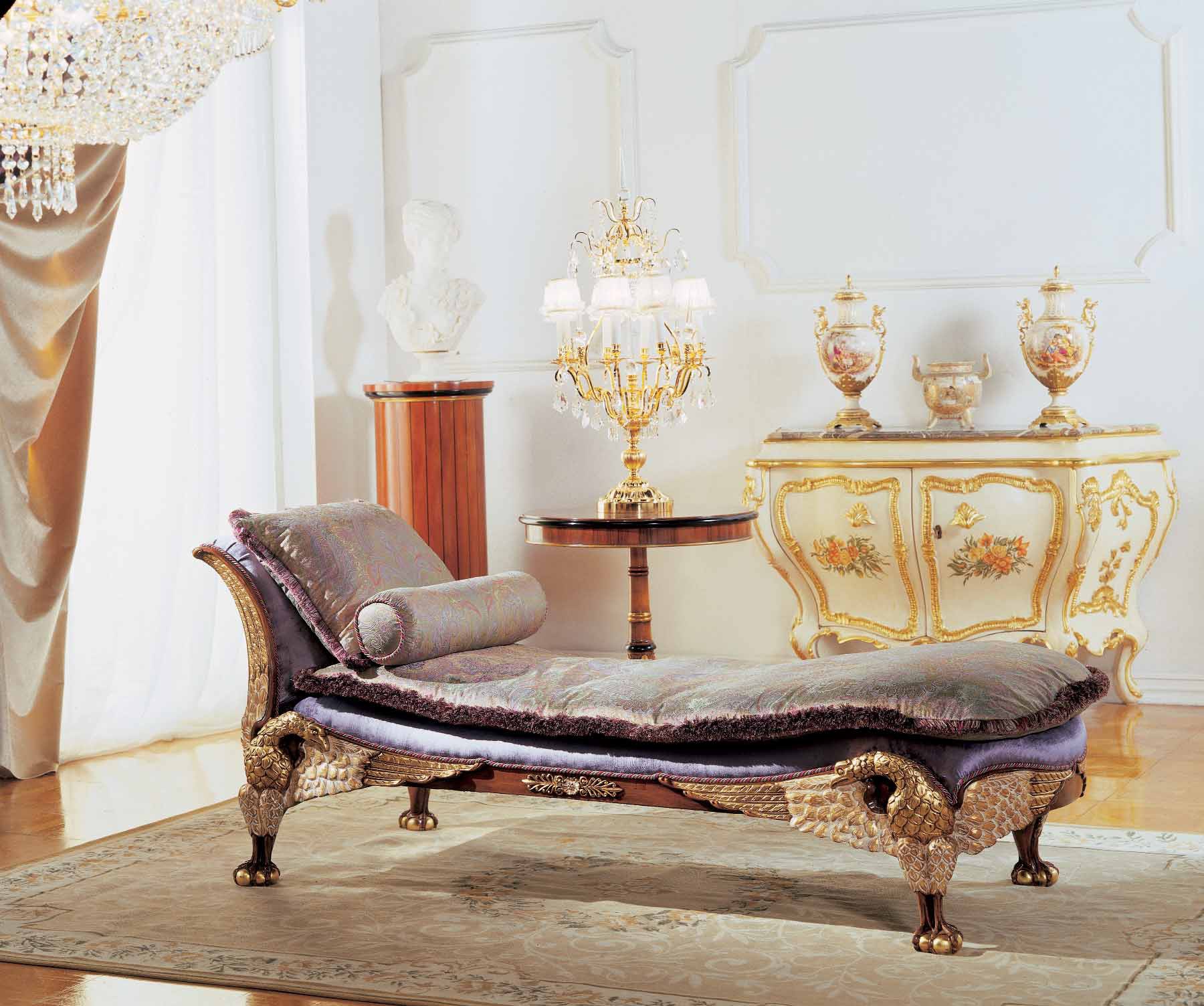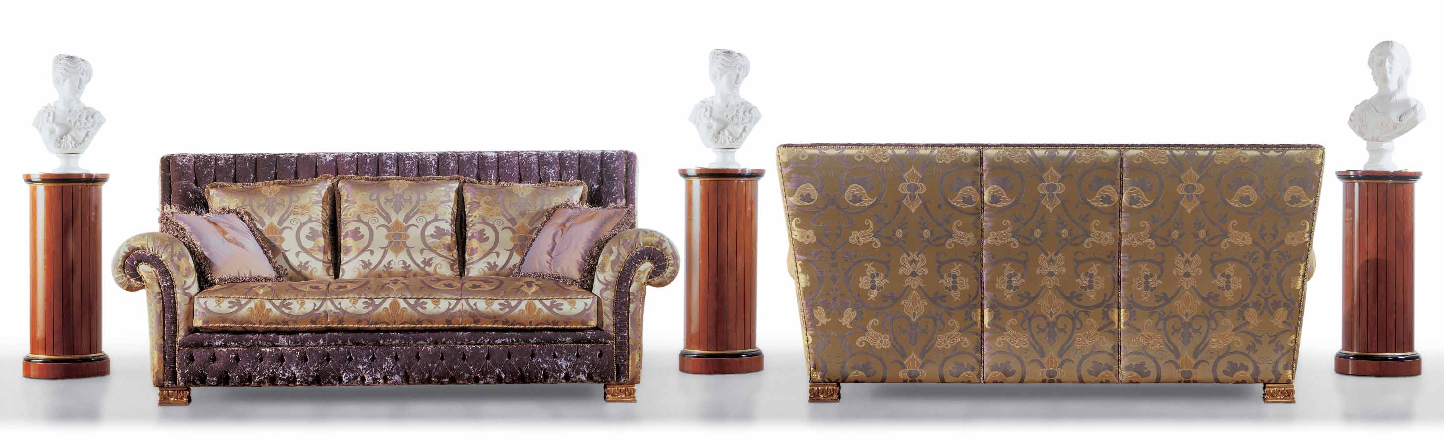 Alice sofa set Italian manufacturer Zanaboni. The presented models of two, three-seater sofa, Ottomans and coffee table. The furniture is made on a frame of wood. The upholstery textile, the combination of purple and Golden. The perfect solution for interior living room in Baroque style.