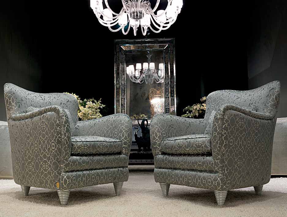 Chair with shaped high back Camilla Italian manufacturer Zanaboni. Presents a model chair with shaped high back, low armrests are rounded. Upholstery made of gray textile. A modern solution for living room.