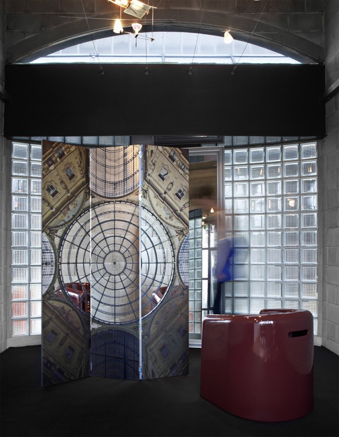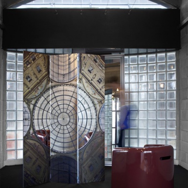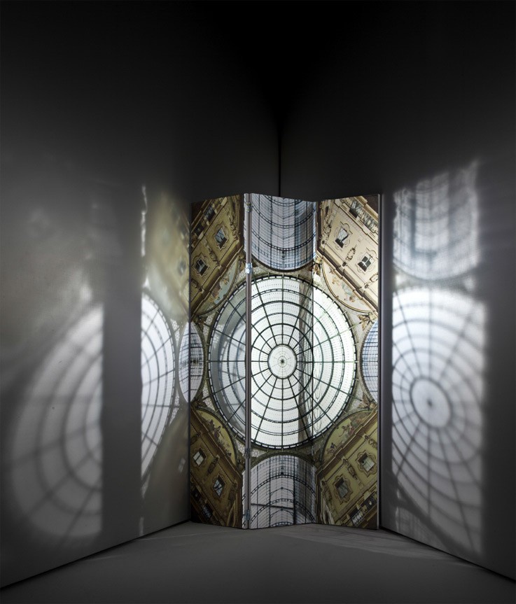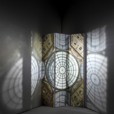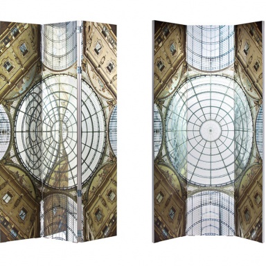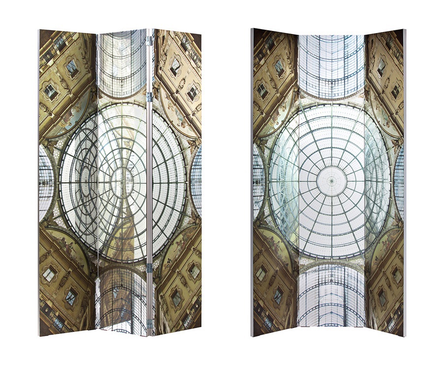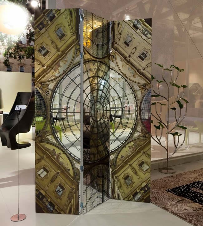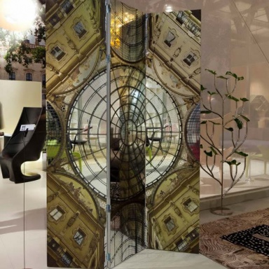Screen Miro from the Italian manufacturer Driade. Panels made of MDF covered with mirror on both sides. Model - tricuspid. The front surface of the screen is covered with a photographic image printed on transparent film. The design is executed in modern style. Great design solution for Your bedroom.