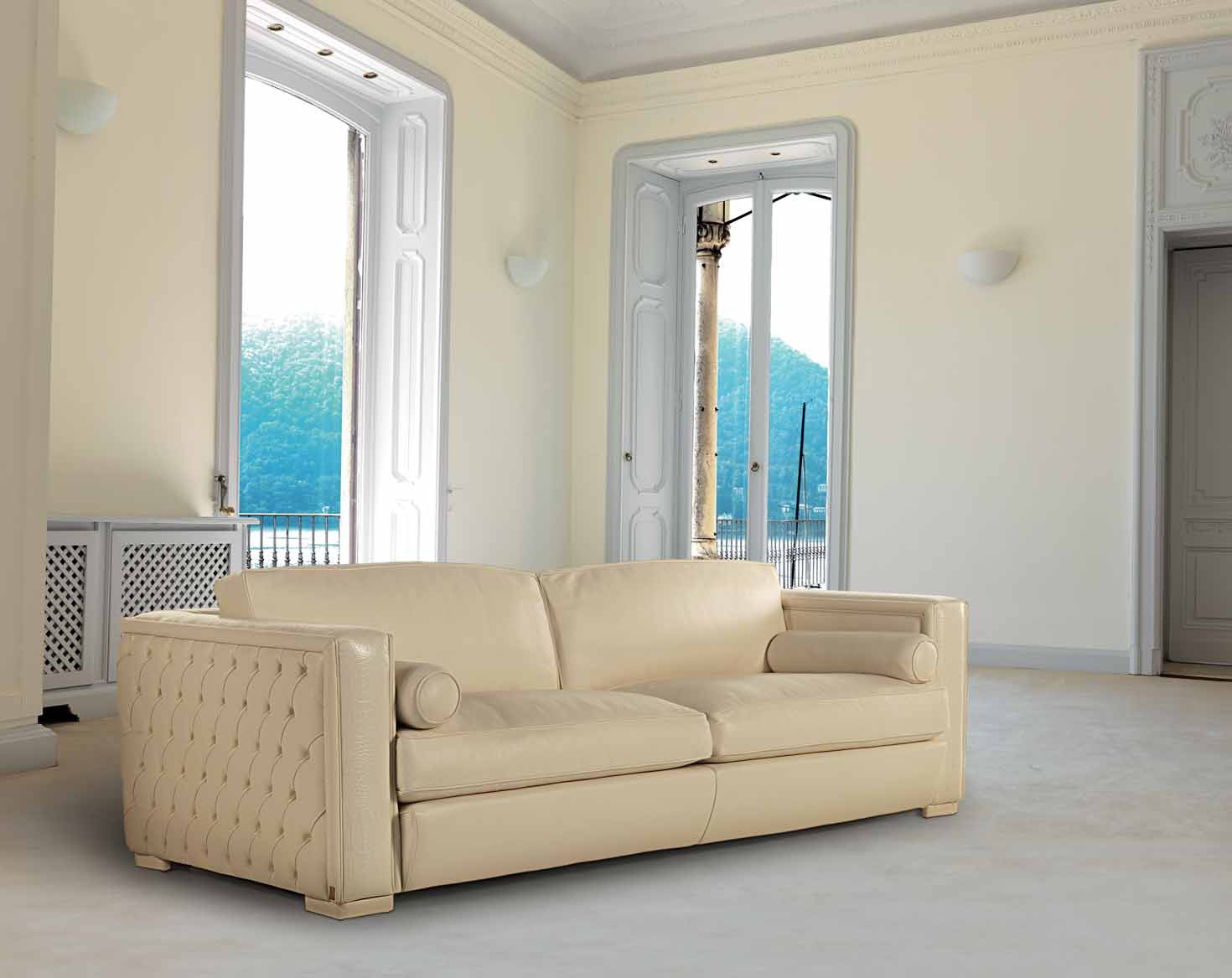 Three-seater sofa Milano Zanaboni Italian manufacturer. The presented model of sofa rectangular frame of natural wood, the upholstery leather in black or white colours. A modern solution for living room.