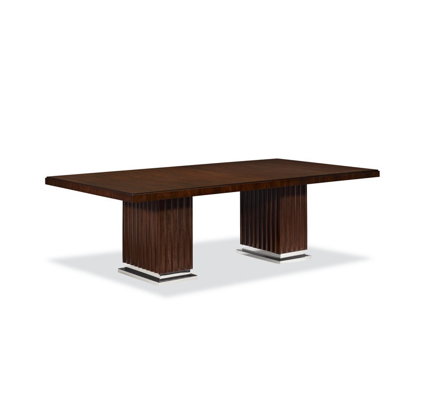 The Duke Pedestal dining table from American manufacturer Ralph Lauren Home. The model is made in modern style. The base is made of Nickel. Table top made of wood of red tropical breeds - black rosewood. Duke Pedestal table is distinguished by elegance, strength and will fit perfectly in any interior.