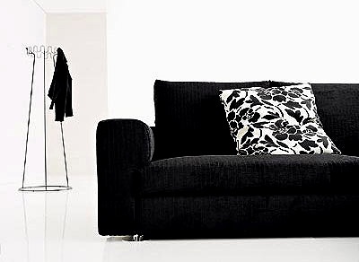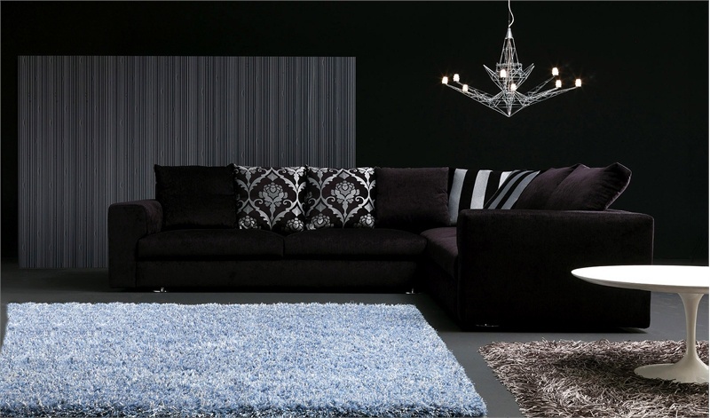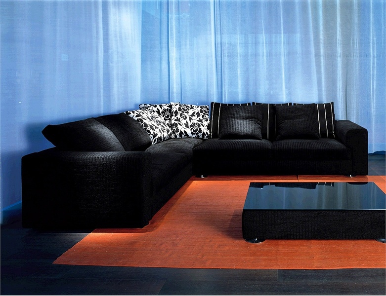 Mary Bud couch from the Italian manufacturer Mimo. The frame is made from solid pine and metal, filler - foam, upholstery - textiles from a range of campaigns. The model is designed for corner living room in modern style. Product color black.