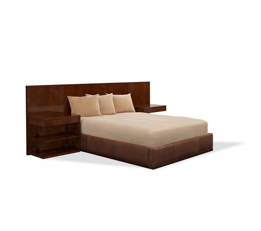 Bed in modern style Modern Hollywood from the American manufacturer Ralph Lauren Home. Frame double beds made of wood. The lower part studded suede. Headboard and bedside shelves are separated. According to the catalogue the manufacturer offers different sizes.