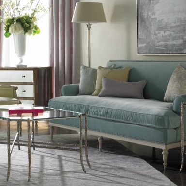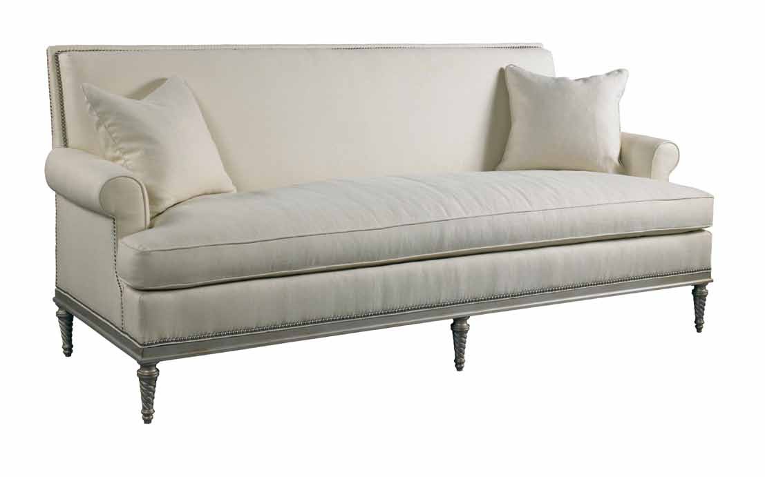 Couch Shelley from the American manufacturer Lillian August. Textile upholstery in combination with French ornamentation to complement the design of the pillows. The frame is made of wood, the possible finishes. Furniture underscores sophistication and refinement to any interior. The model is made in classic style. Colours in stock.