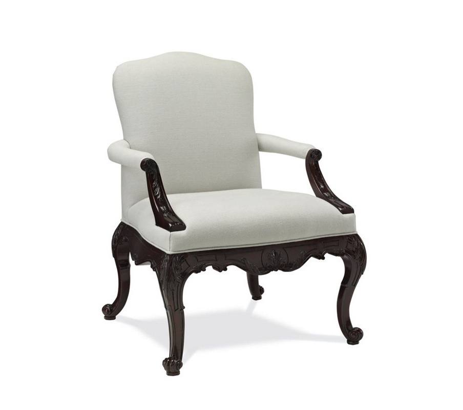 The chair Crested from the American manufacturer Ralph Lauren Home. Extremely beautiful design. Luxurious, Royal wooden chair with armrests. For convenience when using the backrest, seat and armrests made of soft. The frame is made of mahogany wood, adorned with decorative carvings. Upholstery - textiles-catalogue of the manufacturer. There is a model without armrests.
