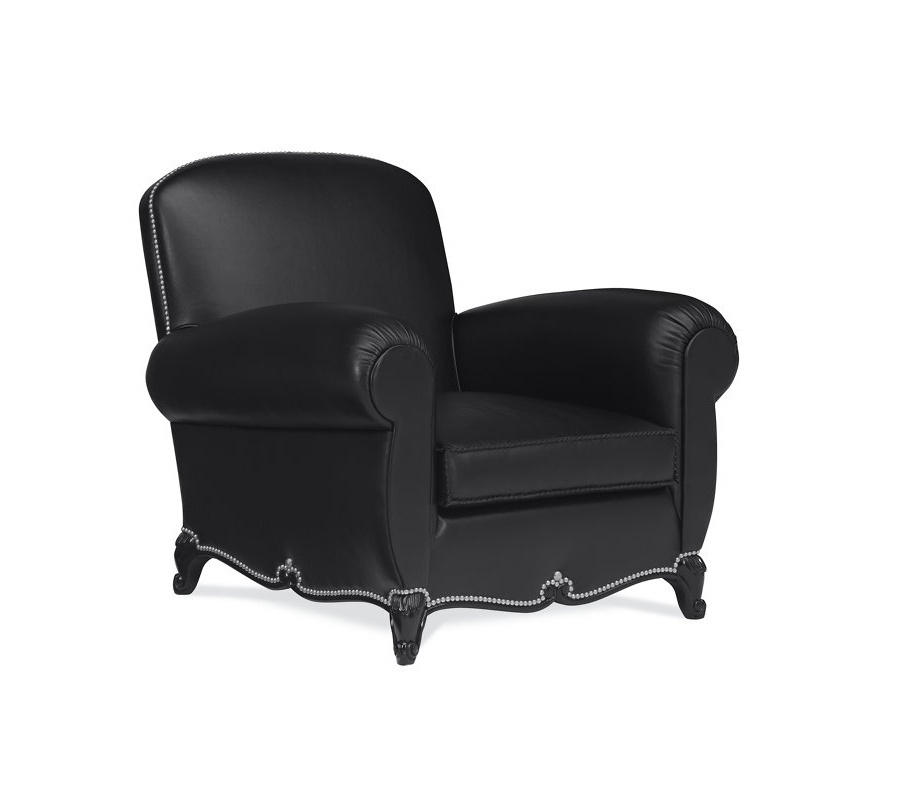 The Marseilles Club chair leather from an American manufacturer Ralph Lauren Home. Finish decorated tin is the element in the design of the chairs that attract the eye and give a sense of refinement. Graceful carved legs give the chair a touch of nobility and luxury, and rounded armrests only complement the beauty of the product. The frame is made of black wood.