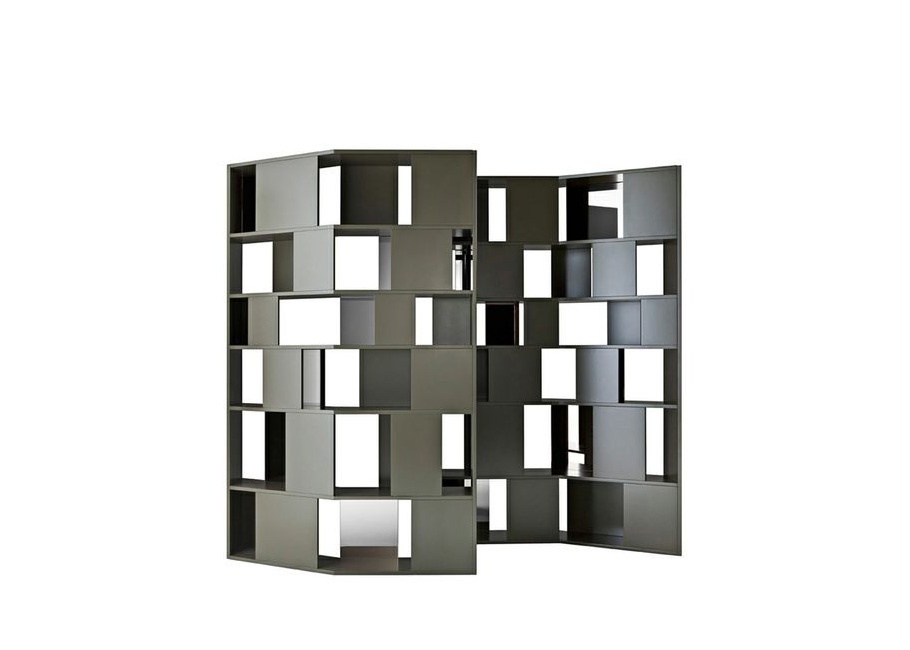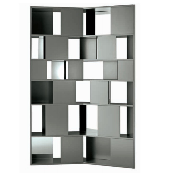 Mosaique bookcase from the Italian manufacturer Driade. Model with a curved profile can be placed as near the wall and in the middle of the room. The frame is made from MDF and varnished. Alternating open and closed shelves decorated with mirrors. The design is executed in modern style. A great option for your living room or library.