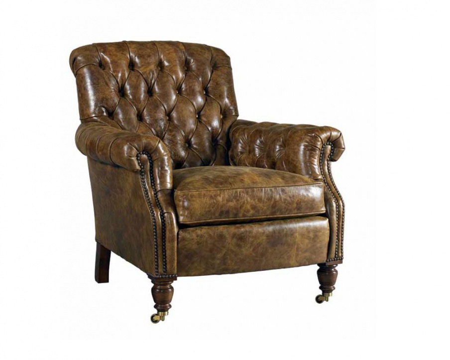 Stanton leather chair from American manufacturer Lillian August. The model is made of wood. Carved front legs with castors, and the back straight. The upholstery is made of leather color antique walnut, decorative furniture nails fixed. The back is decorated with ornamental stitch-Capito. The armrests are in the form of scrolls. Model in the classic style. Color variations in accordance with the manufacturer's catalogue.