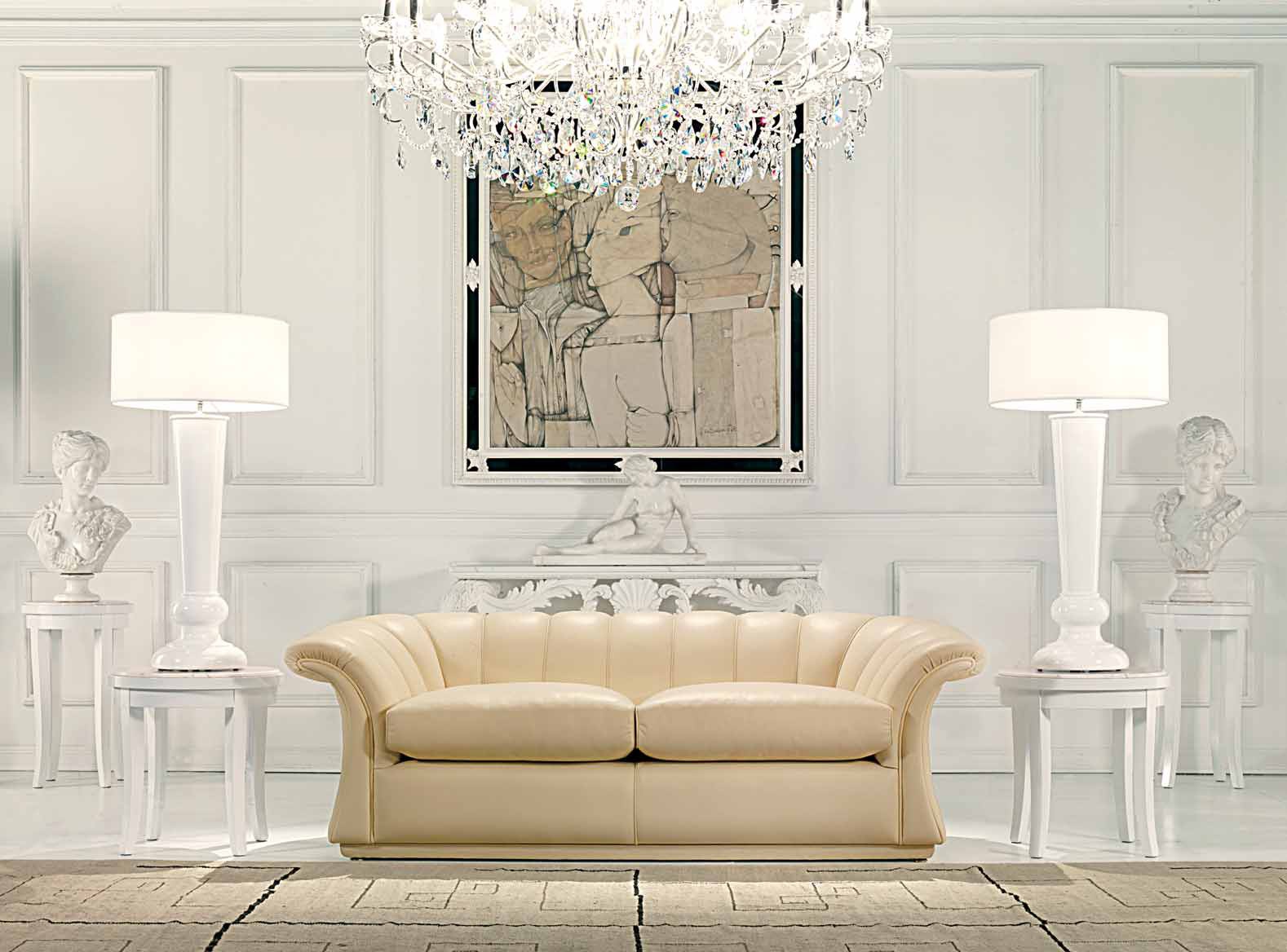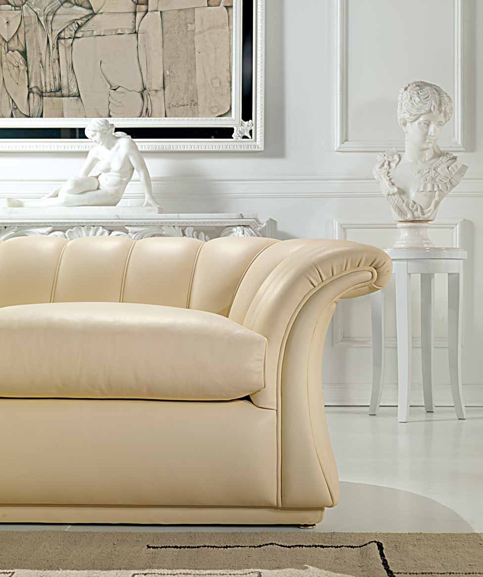 Double sofa Perla Italian manufacturer Zanaboni. The model of the sofa fully upholstered in leather beige color. The seat cushion is removable. The armrests are curved and soft. Perfectly complement the interior living room in modern style.
