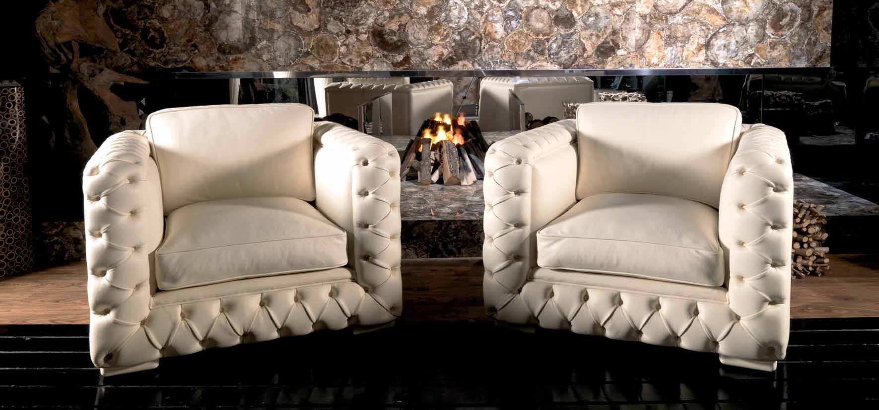 Armchair small square Oceano Italian manufacturer Zanaboni. Presents a model of a square seat in a low back and armrests. Decorated with stitch Capito. Padding upholstered in white skin. The seat cushion and backrest removable. Perfectly complement the interior room in the style glamor.