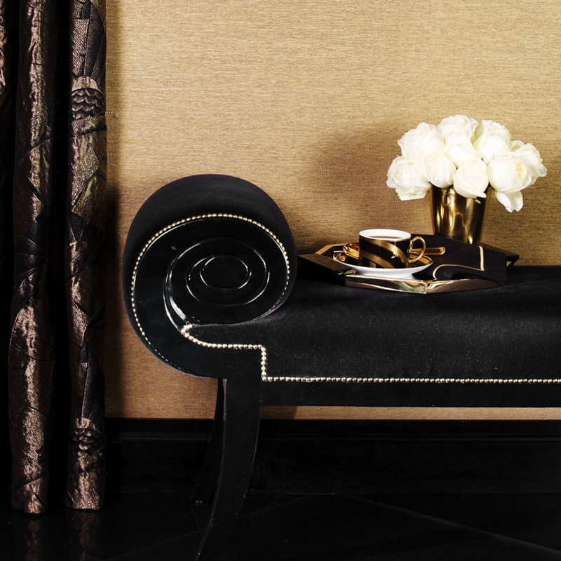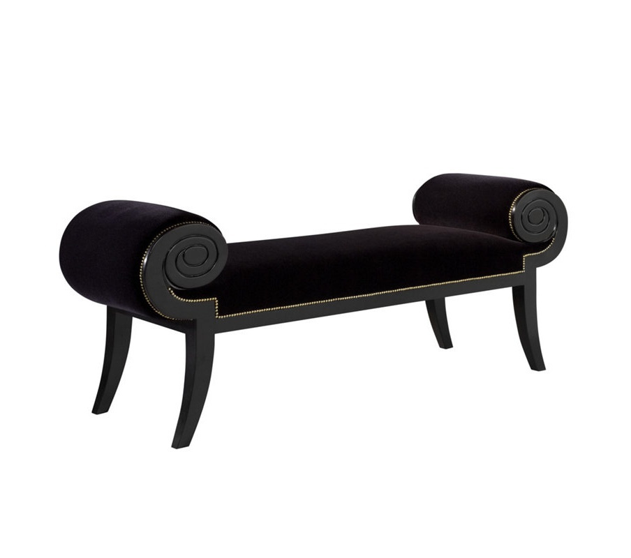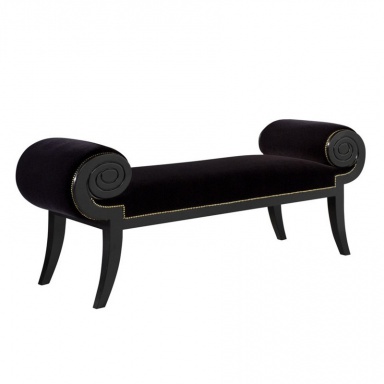 Bench soft One Fifth Klismos from the American manufacturer Ralph Lauren Home. The model in the Greek style of 40-ies will perfectly fit the interior of bedroom or hallway and will create the atmosphere of coziness and comfort. Twisted shell as the soft armrests give the bench elegance and grace. The frame is made of mahogany. Upholstery and colors in stock.