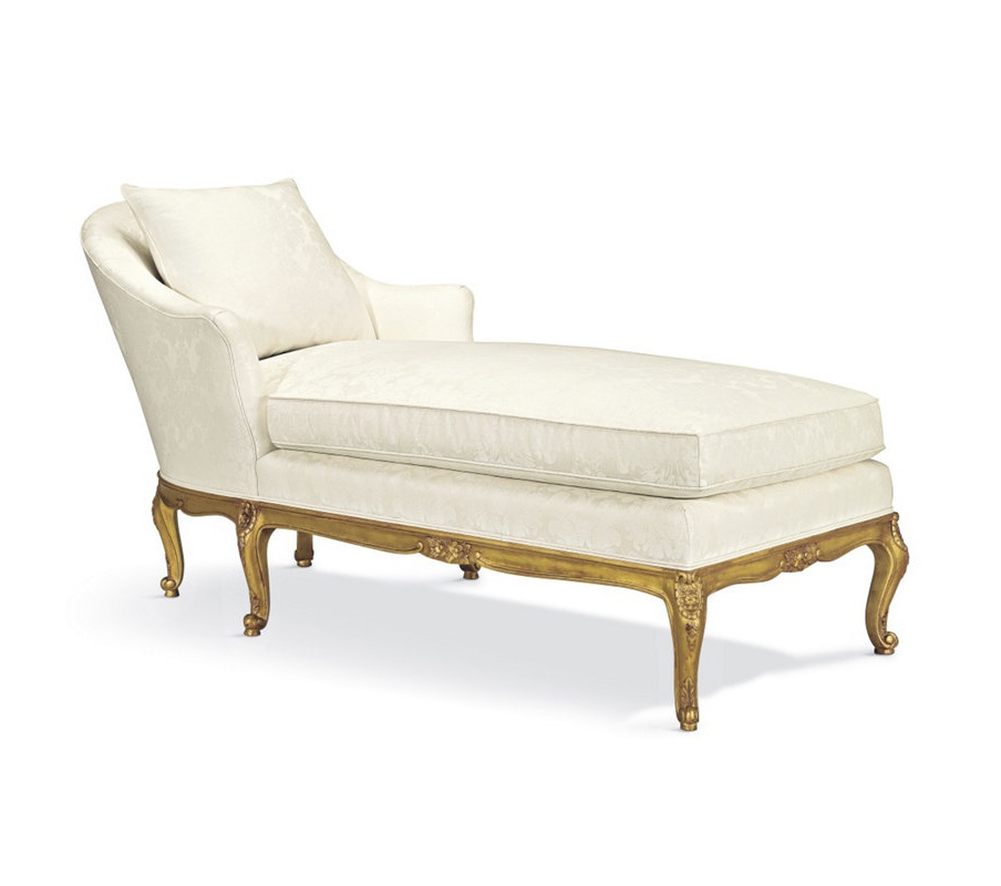 Couch roll-top bath Cannes from an American manufacturer Ralph Lauren Home. Design in the French style during the reign of Louis XV. It was created to be in her reclining, his legs stretched out. The model features a high rounded headboard and padded armrests. Carved curved legs made of mahogany covered with gold leaf. Upholstery and colors in stock.