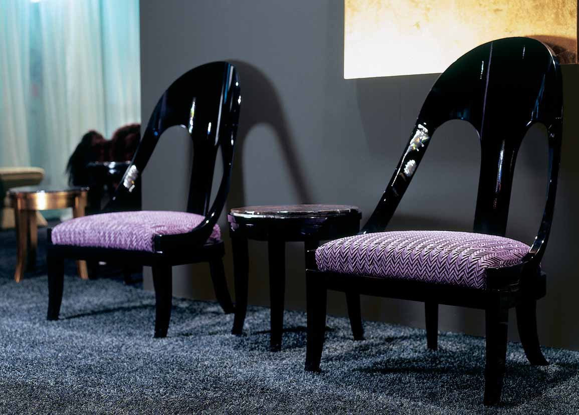 Chair with high back Italian manufacturer Zanaboni. The presented model of semi-circular chairs with a high back which fades into the armrests. Seat upholstery in a soft purple tone. A modern solution for living room or public places.