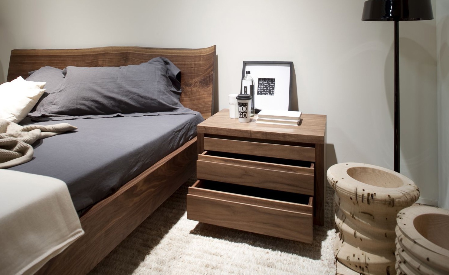 Double bed Natura 6 from the Italian manufacturer Riva 1920. Bed made entirely of solid wood (oak or walnut). The natural line of the upper edge of the headboard retains the original shape of the tree trunk. Offered seven options for the width of the bed. The length is the same for all versions - 216 cm Height - 90 cm Model is made in a modern style.