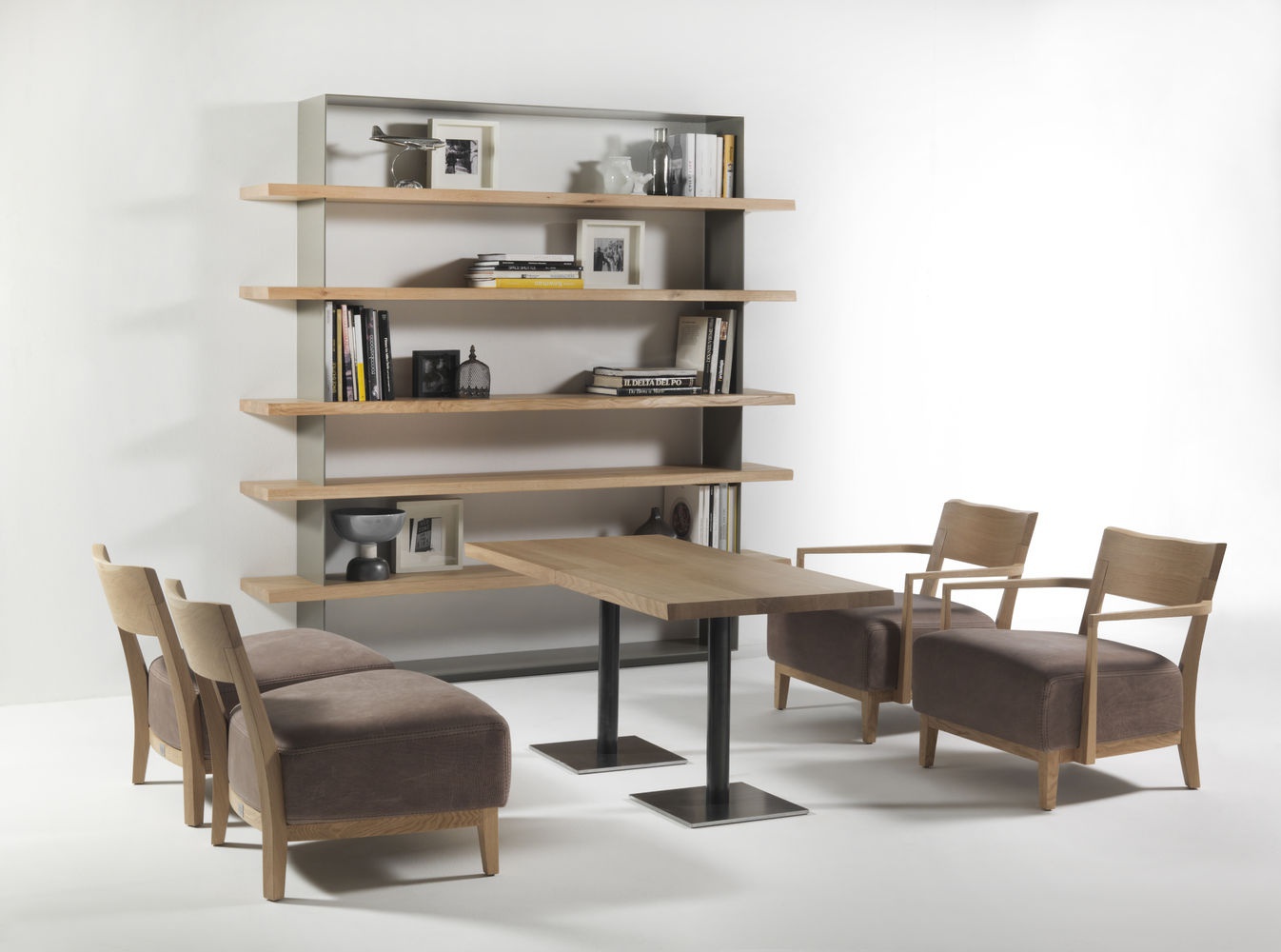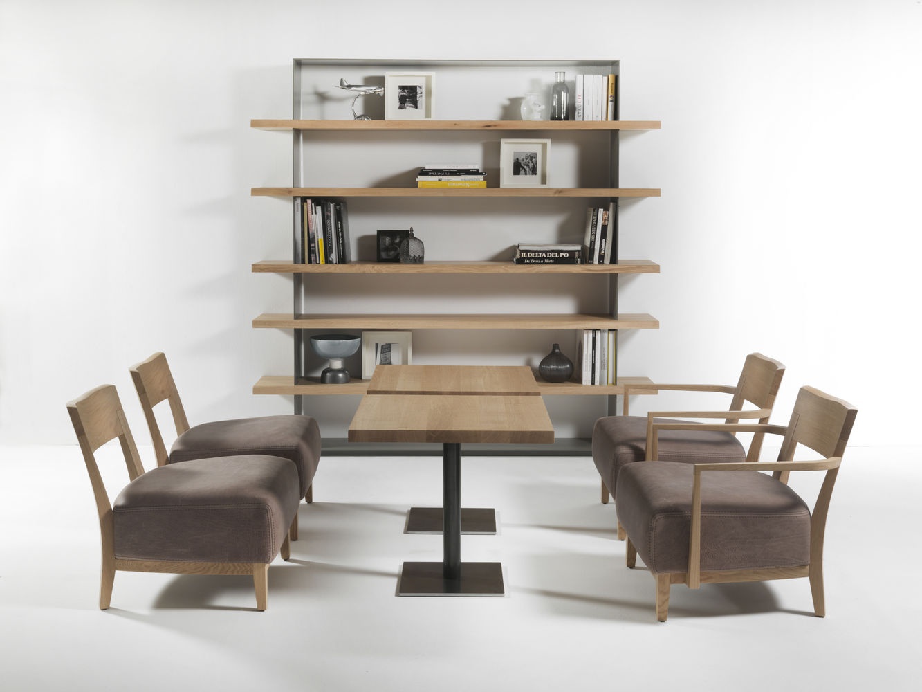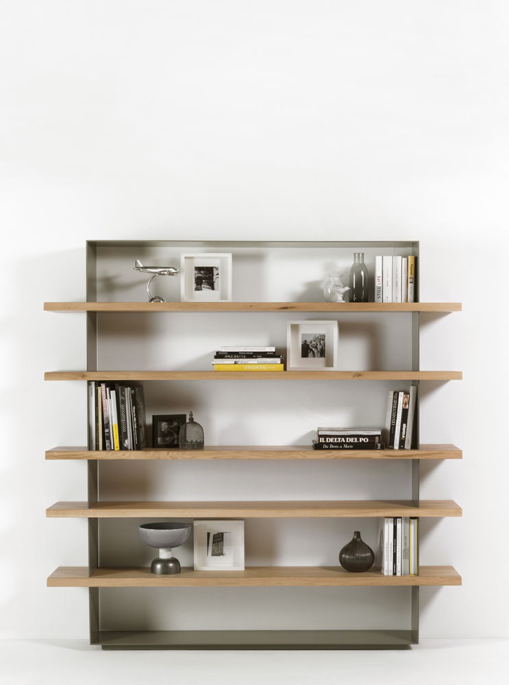 Rack Crazy from the Italian manufacturer Riva 1920. The frame is in the form of a frame made of cast iron, for shelves using wood. The surface is covered with a transparent or colored lacquer depending on the preferences of the customer. The model is in modern style. Color - natural wood in stock.