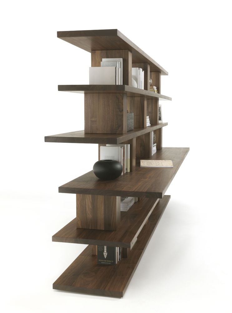 Bookcase Bookshelf from Italian manufacturer Riva 1920. For the manufacture of this model uses solid wood from the company portfolio. The surface is covered with a transparent varnish. Model with shelves of different depth. The rack is designed in modern style. Color - natural wood.