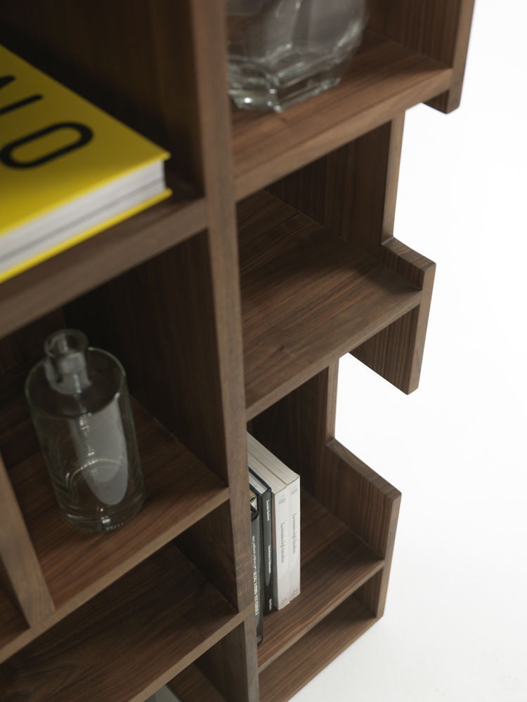 Bookshelf Neuma from the Italian manufacturer Riva 1920. The frame is made of wood. The surface is covered with clear or colored lacquer. Model with open shelves. The design is executed in modern style. Color - natural wood.
