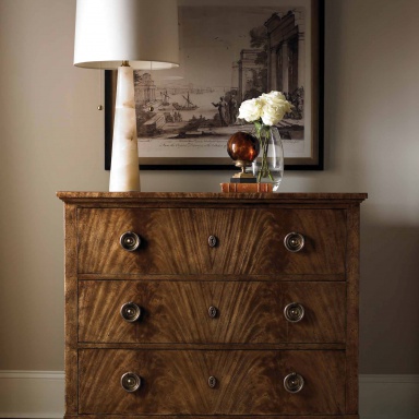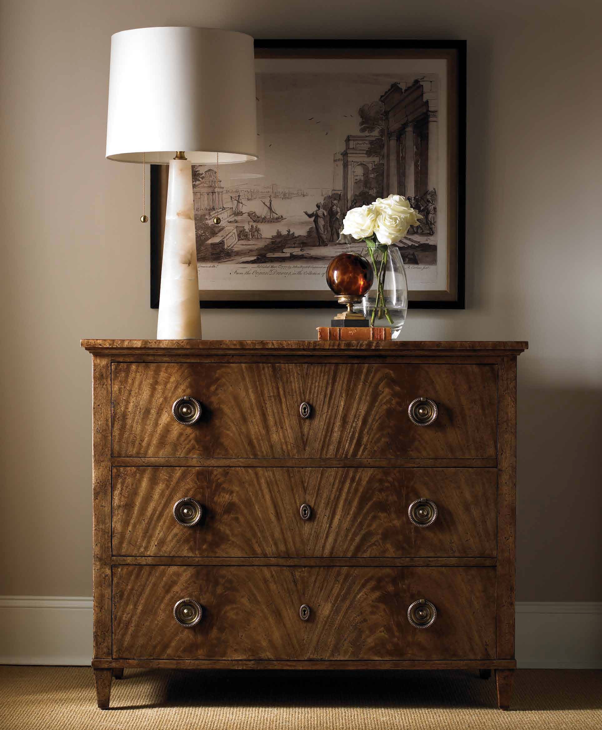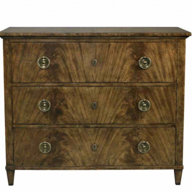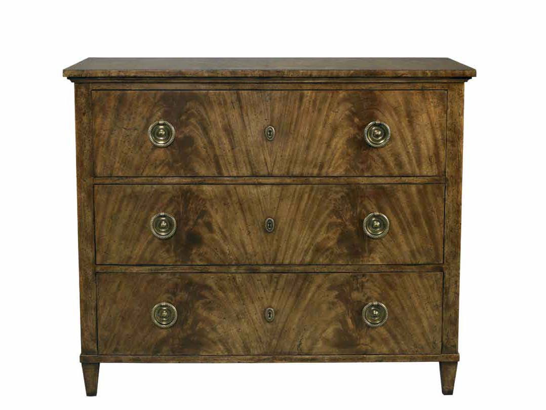 The Windsor chest from the American manufacturer Lillian August. The classical model chest of drawers with three drawers for storage. This model combines the Italian style and modern technology. The facades of the drawers decorated with elegant brass handles and keyholes. Housing material - veneer chestnut color, with natural wood grain. Standard finish - walnut variety. Color in stock.