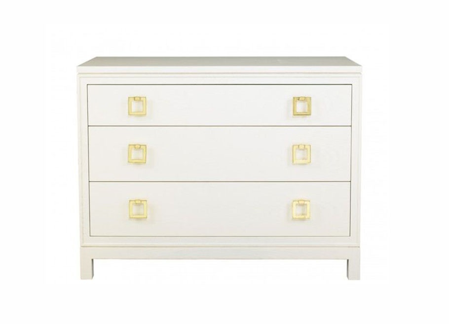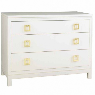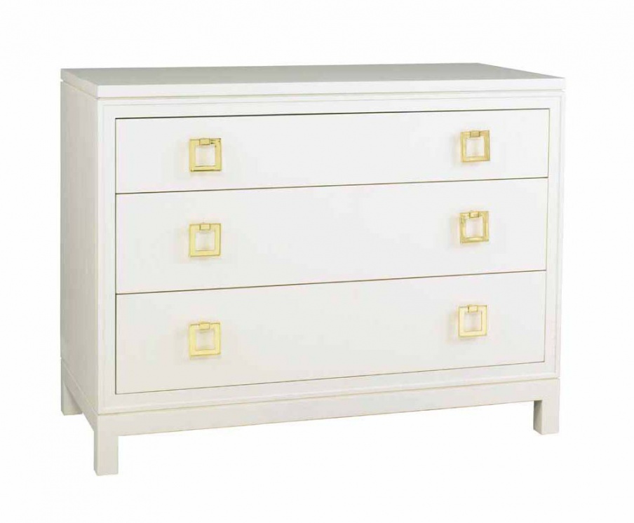 Dresser Clifford from the American manufacturer Lillian August. Model of chest of drawers with three drawers for storage. The facades of the drawers decorated with gilt brass handles in the shape of square rings of color. Hull material - wood, color - white. The furniture is executed in classical style with modern trends. Color variations in the catalog of the manufacturer.