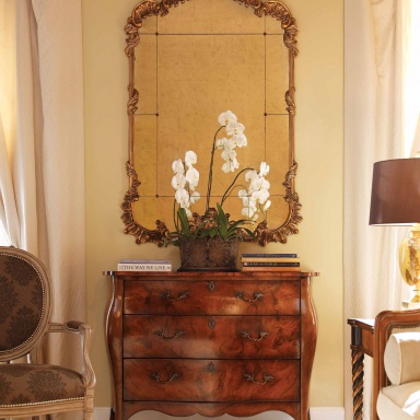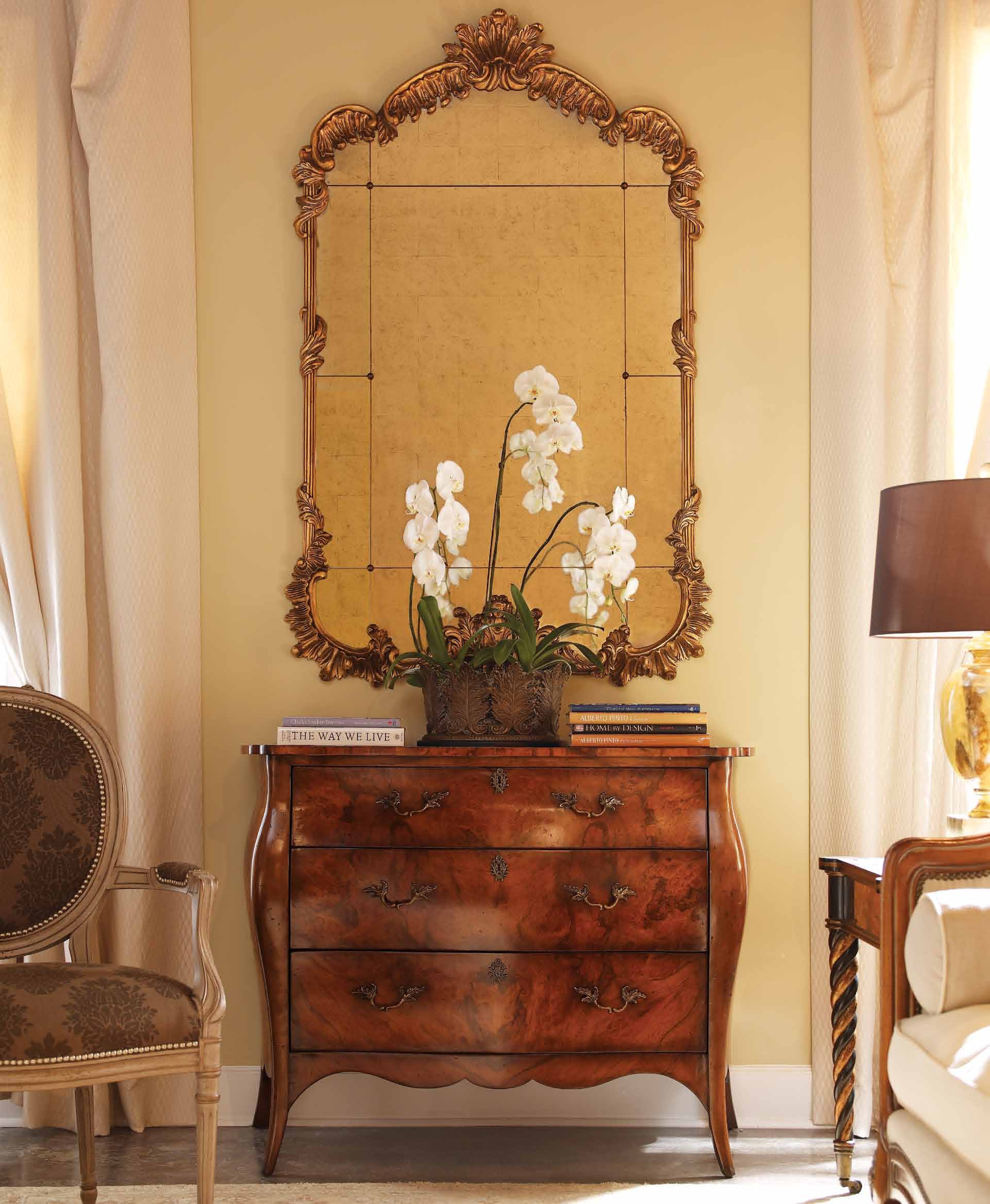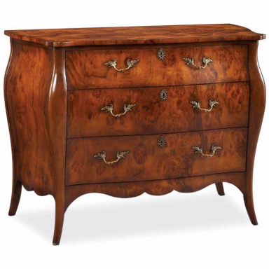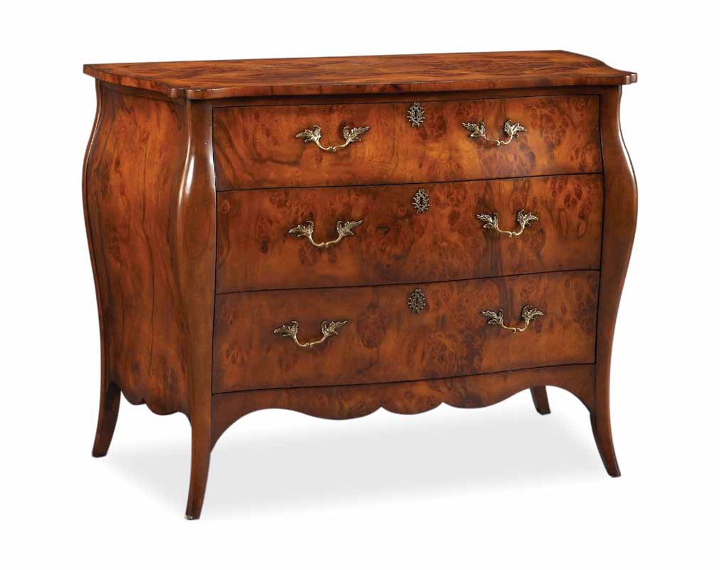 Dresser Brooke from the American manufacturer Liliian August. Model of chest of drawers with three drawers for storage. The facades of the drawers are decorated with antique fittings from brass. Metal handle art forging. Exquisite design and classic style, aesthetic forms provide a combination of fashion and functionality. Case material – wood. Standard finish is walnut, the photo shows model in chestnut, also available other finishes. Colours in stock.