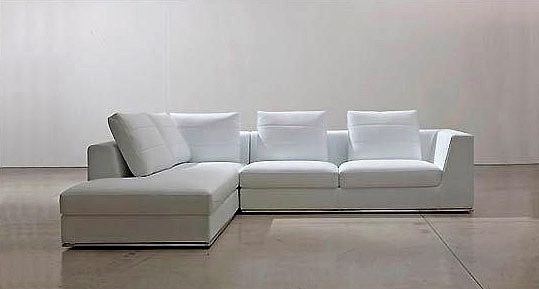 Sofa Remix from Italian producer Mimo. The frame is made from solid wood, legs - plastic, filler - foam, upholstery - leather. The model is designed for corner living room in modern style. Colors: white, black.