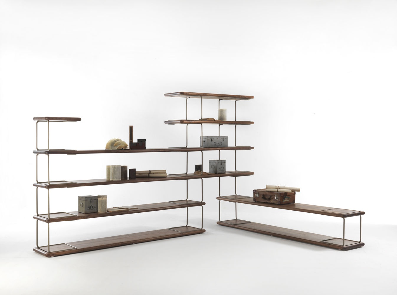 The Tubular rack from the Italian manufacturer Riva 1920. For making shelves used solid wood in stock. The surface is covered with varnish. Shelves with rounded edges are connected by supports made of metal tubes. The rack is designed in modern style.