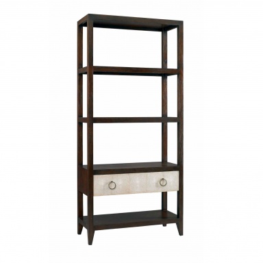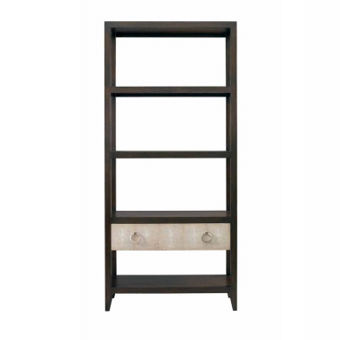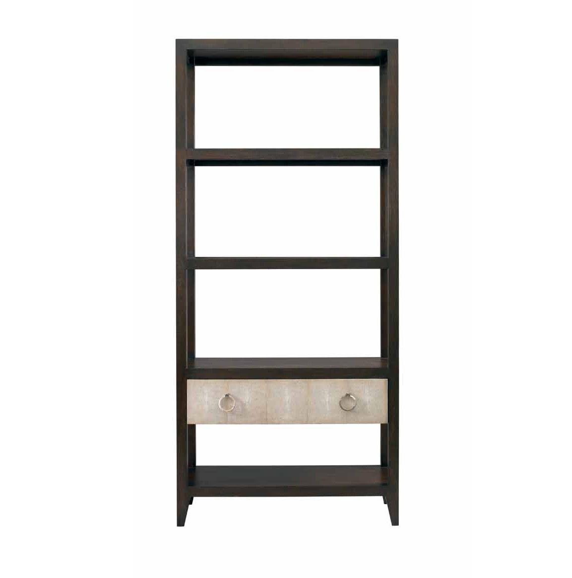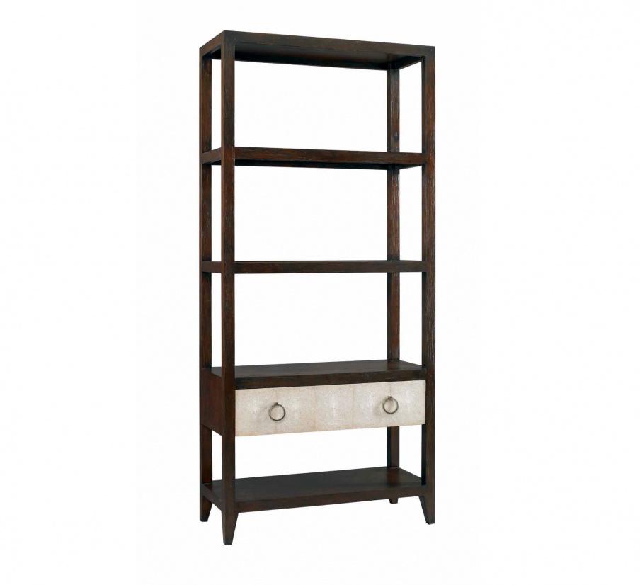 Bookcase Breuer from the American manufacturer Lillian August. The model includes shelves for books and storage box. The body is made of solid wood. Decorative metal fittings in the form of rings. Color black, fronts of drawers pearly white. Possible color variations from a range of firms. The furniture in the art Deco style.