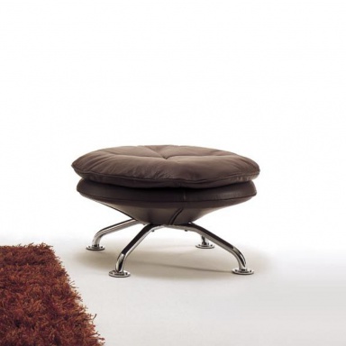 A Single puff for the feet from the Italian manufacturer I4 Mariani. Stool chair with upholstery of genuine leather and frame in chrome-plated steel. Colors - in stock. A perfect complement for the armchair from the same collection. The product will bring convenience and comfort to a living room or study.