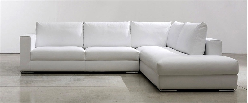 The Tiffany sofa from Italian manufacturer Mimo. The frame is made from solid wood, legs - chrome steel, filler - foam, upholstery - leather. The model for corner living room in modern style. Product color white.