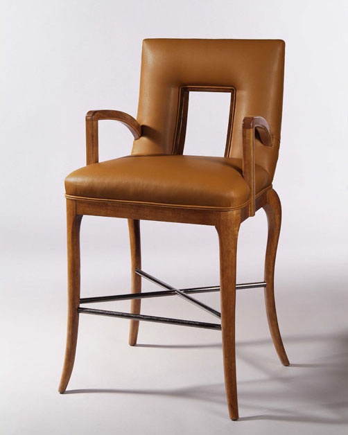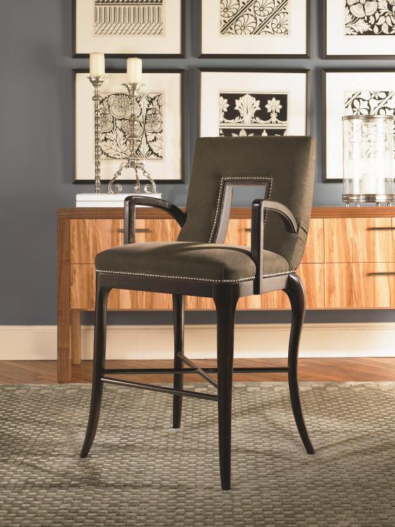Marco chair with armrests from an American manufacturer Century Furniture. The carved frame is hand made of solid wood. The seat and back are upholstered in textile or leather from the range of the manufacturer. Model of modern design.