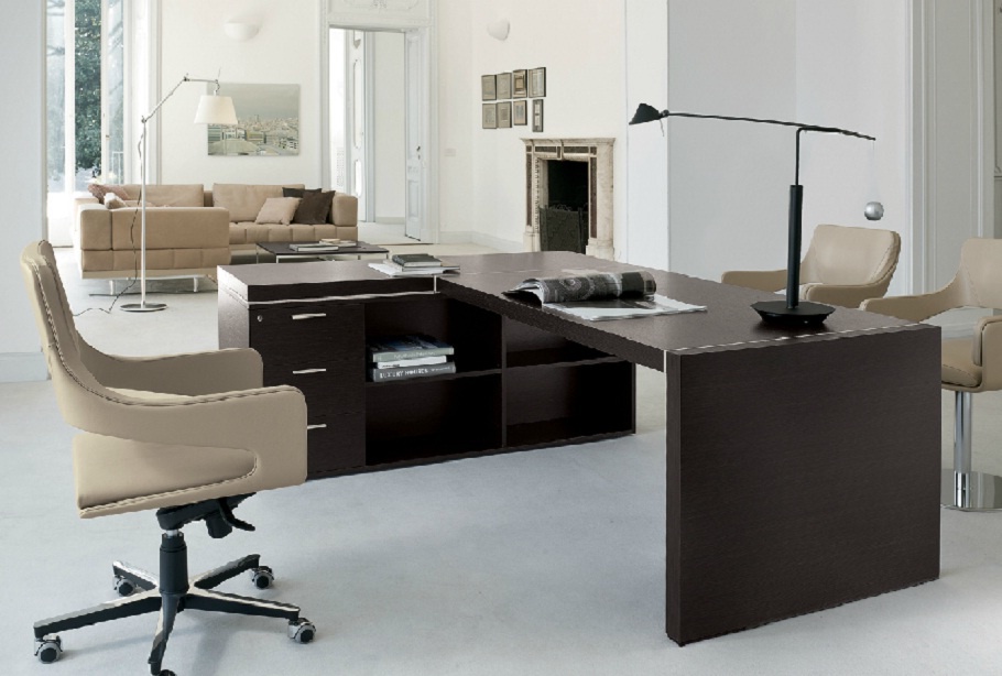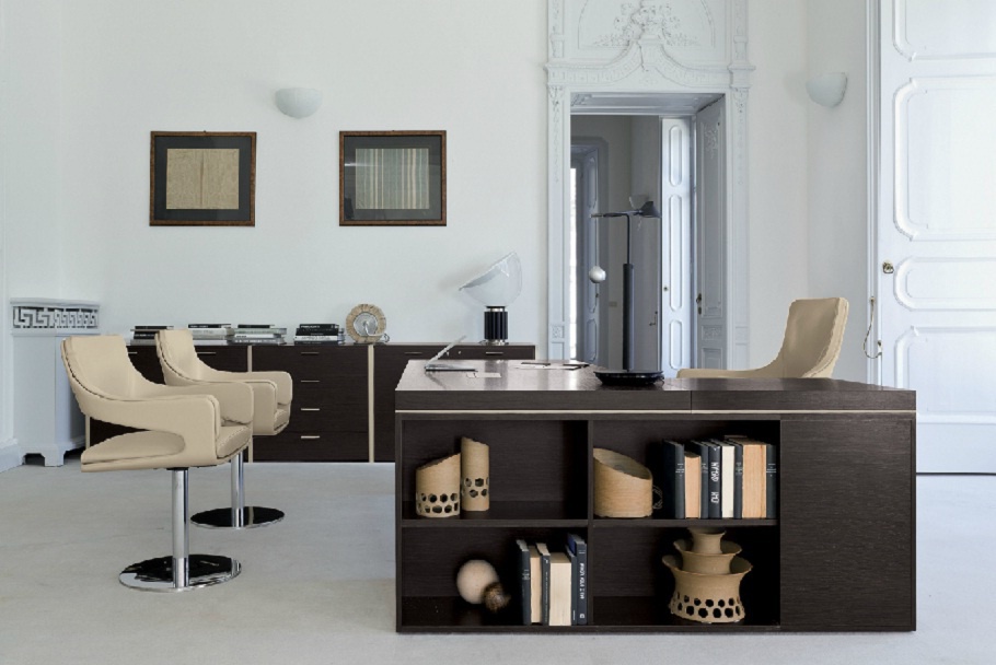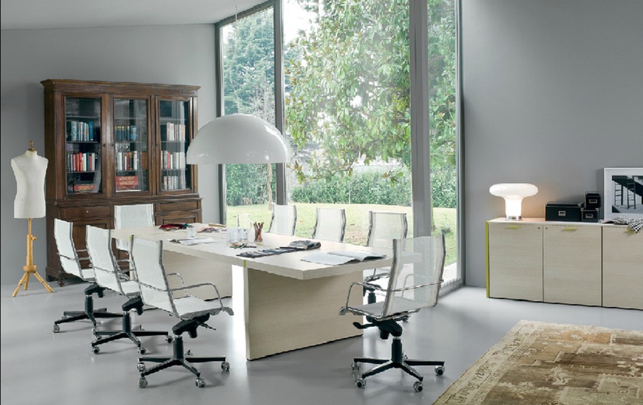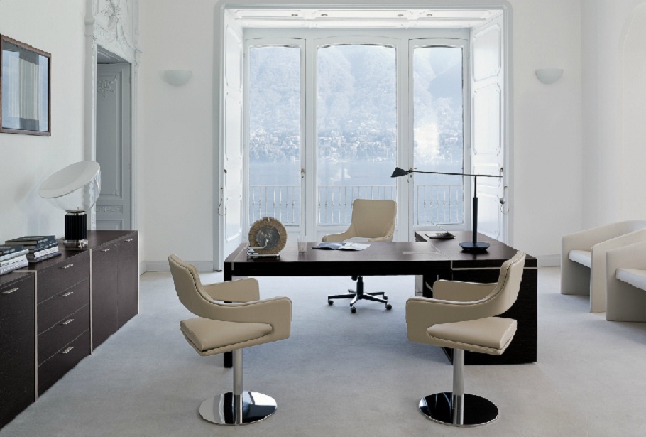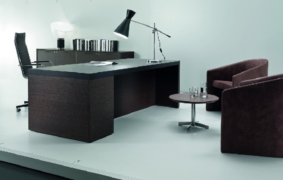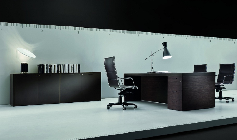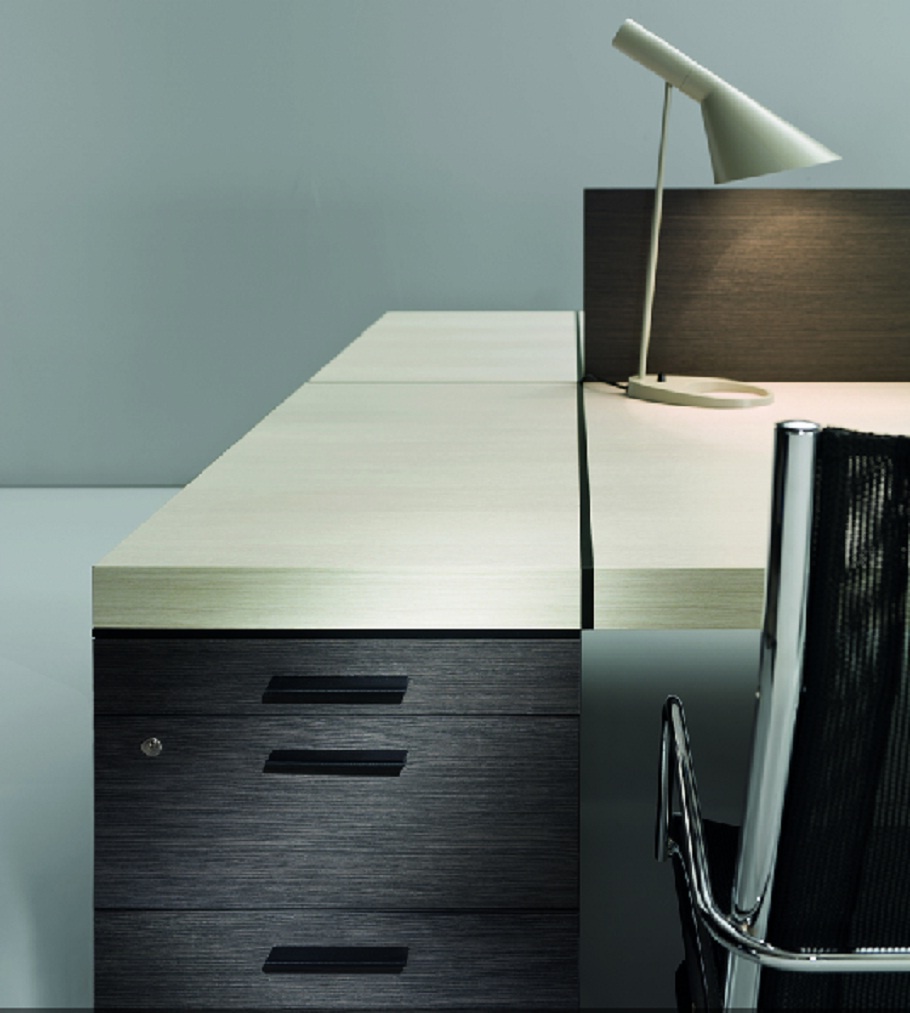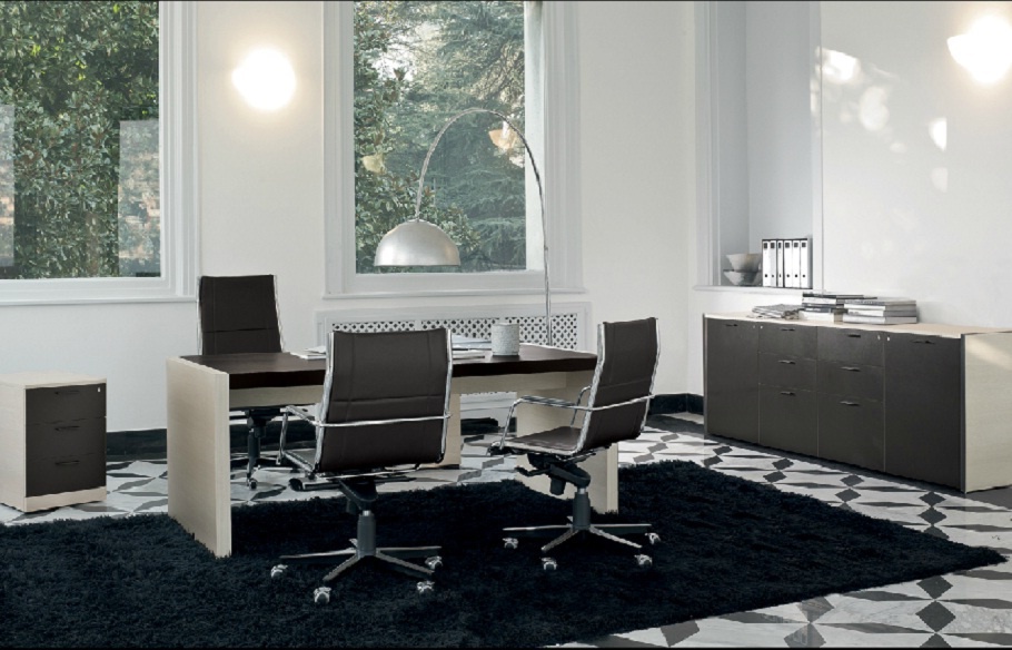 Office table Blade manufacturer from Italian i4 Mariani. A choice of Desk and conference table, rectangular and round. Table top and frame made of high quality particleboard, oak spanierman. The decor can be made of genuine leather. Offered several color finishes. Dimensions various - from the range of the manufacturer. Massive strict product design will give solidity to Your office or office space.