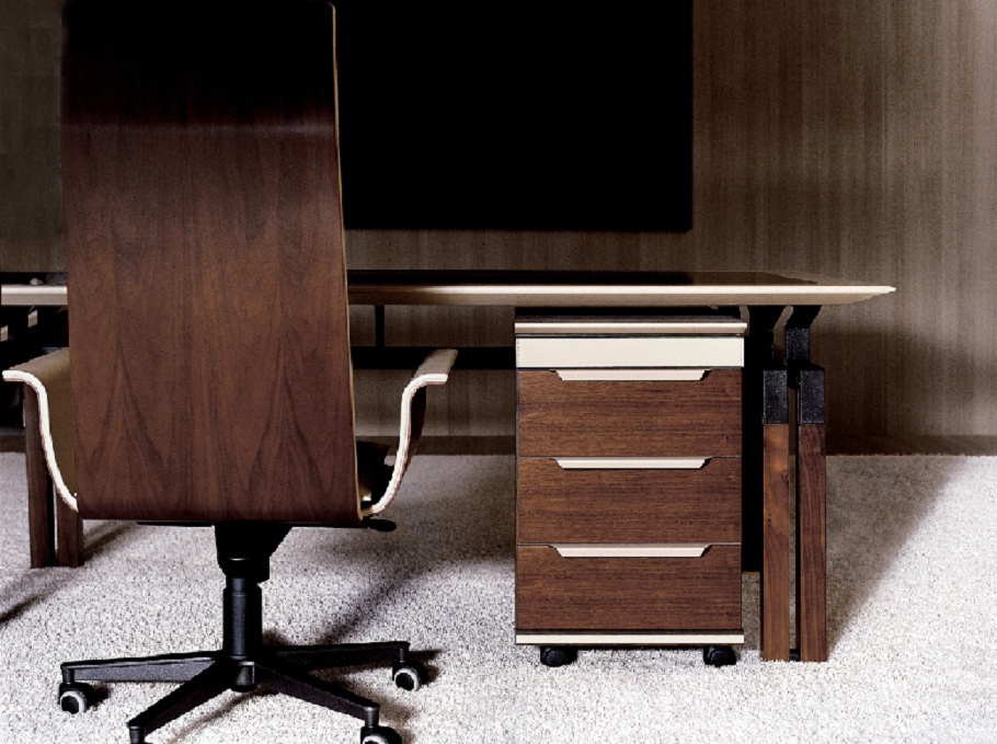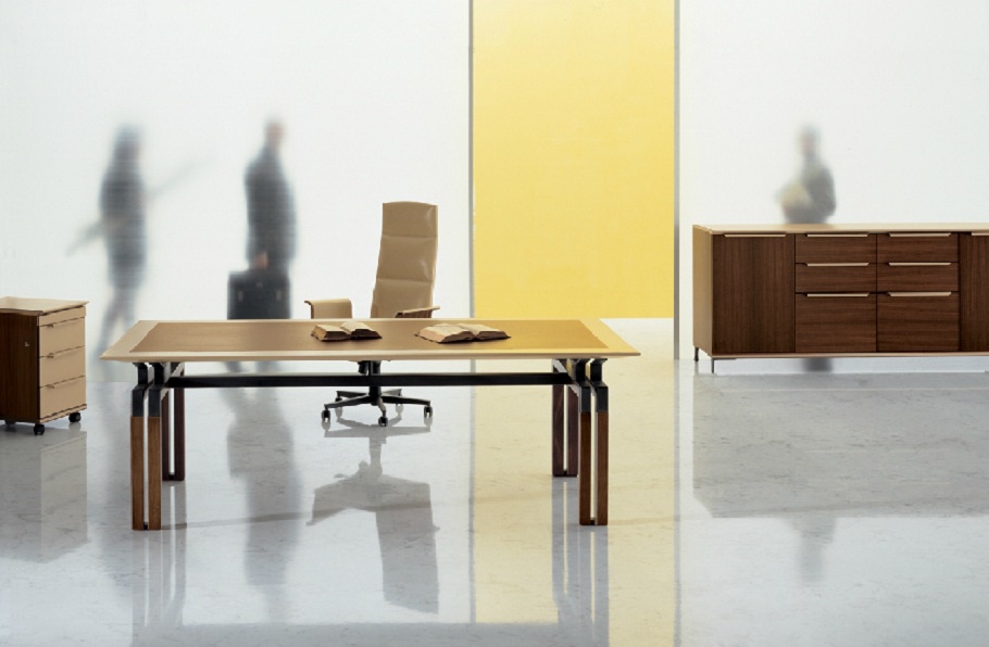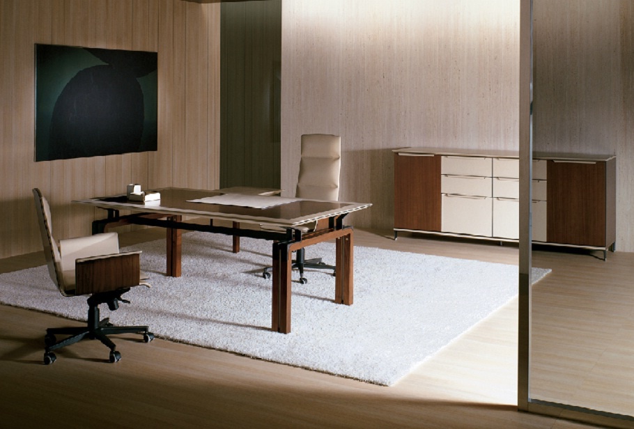 Table Paso Doble from the Italian manufacturer I4 Mariani. The frame is made from solid wood and metal. The product can be decorated with veneer walnut and leather. Finish and colour range offers a choice of the catalog company. The table will beautifully complement a room or office space.