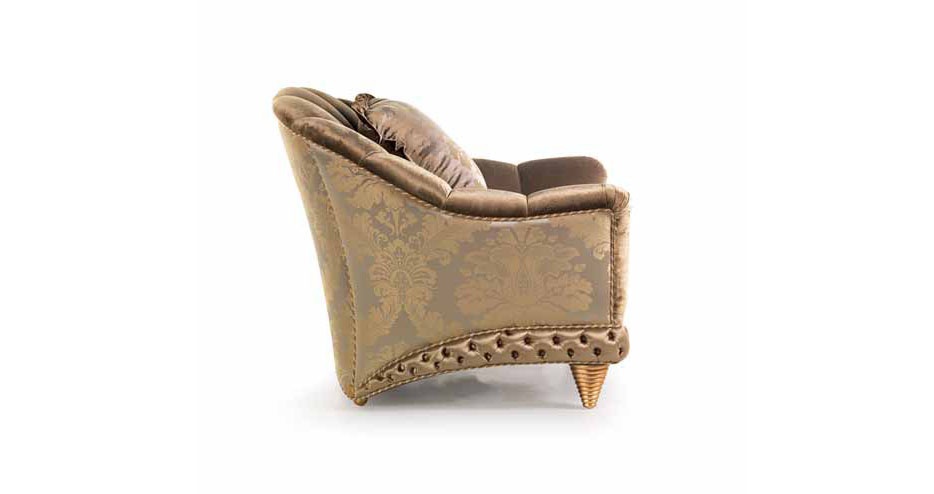 Armchair Poltrona Italian manufacturer Zanaboni. Presents a model reclining on a wooden frame in fabric. The semi-circular armrests, back cushions and seats are removable. The legs are tapered. Decorated with stitch Capito. A wonderful addition to the interior living room in Baroque style.