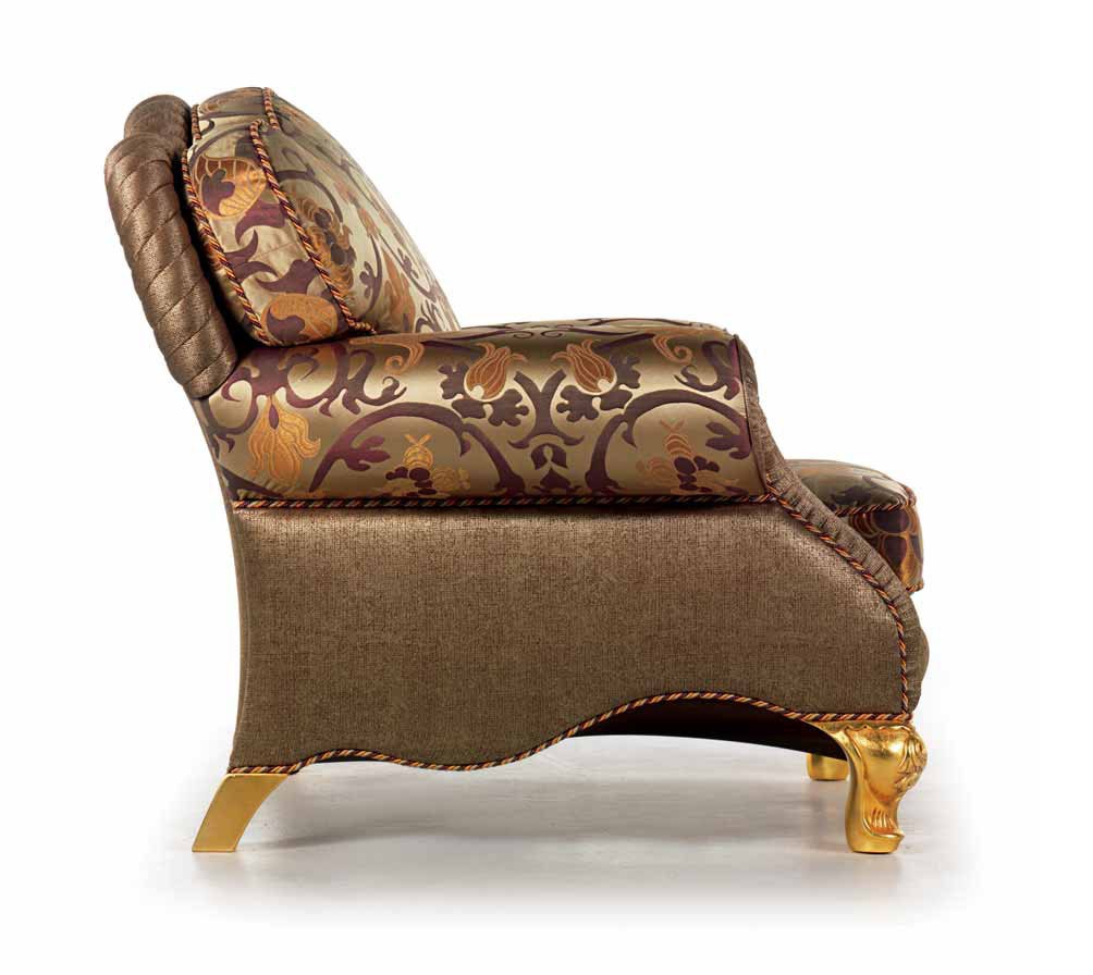 Chair with high back Italian manufacturer Zanaboni. Presents a model of the chairs in the Baroque style. The semi-circular armrests, back braces. Upholstery textile, seat cushion and backrest removable. The color sentence in brown tones.