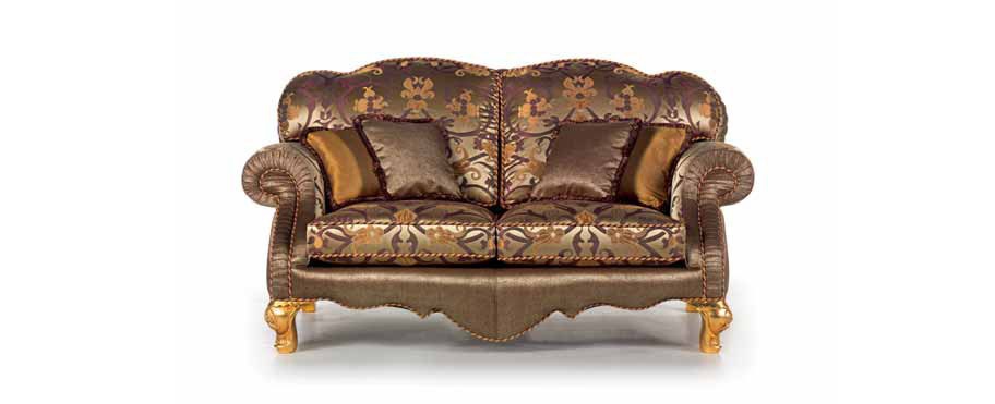 Sofa double Signoria Italian manufacturer Zanaboni. Presents a model of two-seater sofa with shaped back and round armrests. Back cushions and seats are removable. Upholstery textile in shades of brown with patterns. Perfectly complement the interior in the Baroque style.